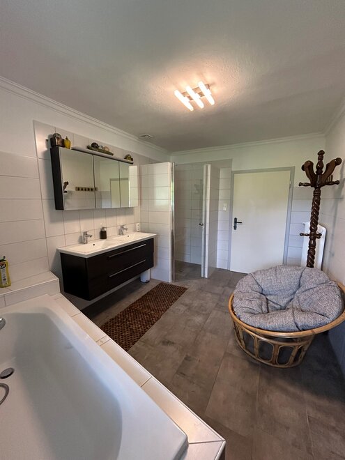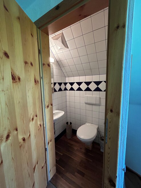 The bathroom is equipped with both a bathtub and a shower. Additionally, there are two separate toilets available. The kitchen is fully equipped with an oven, fridge-freezer, dishwasher, and coffee machine. A cozy dining area is also included. The living room is separate and offers a space for relaxation – it also contains the sofa bed.