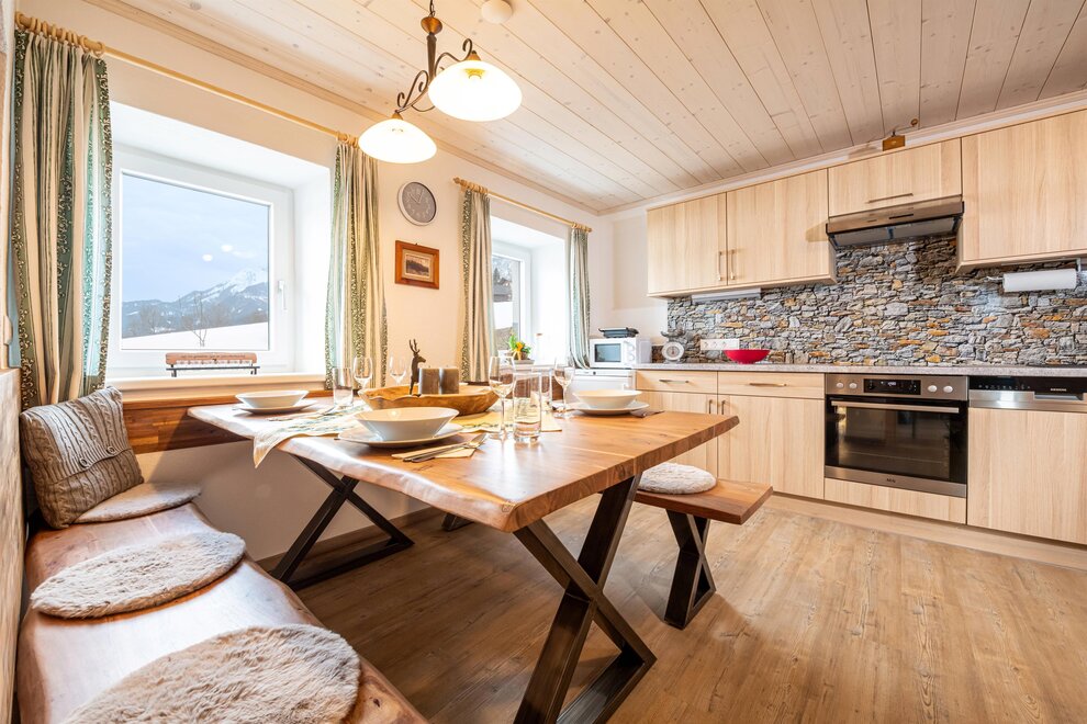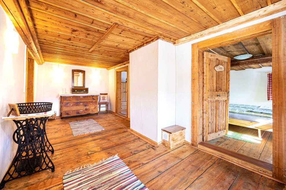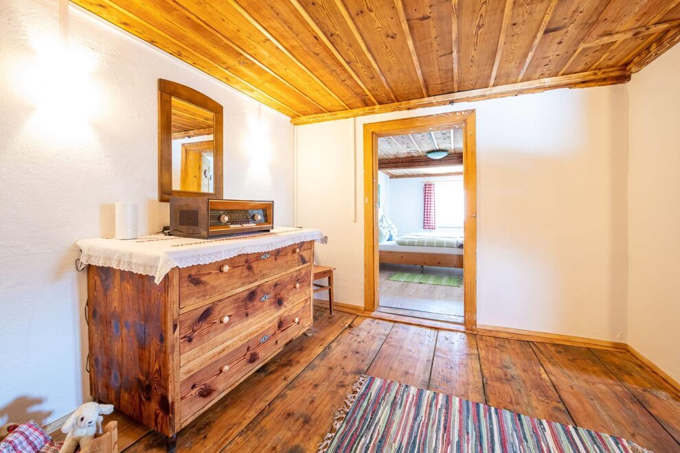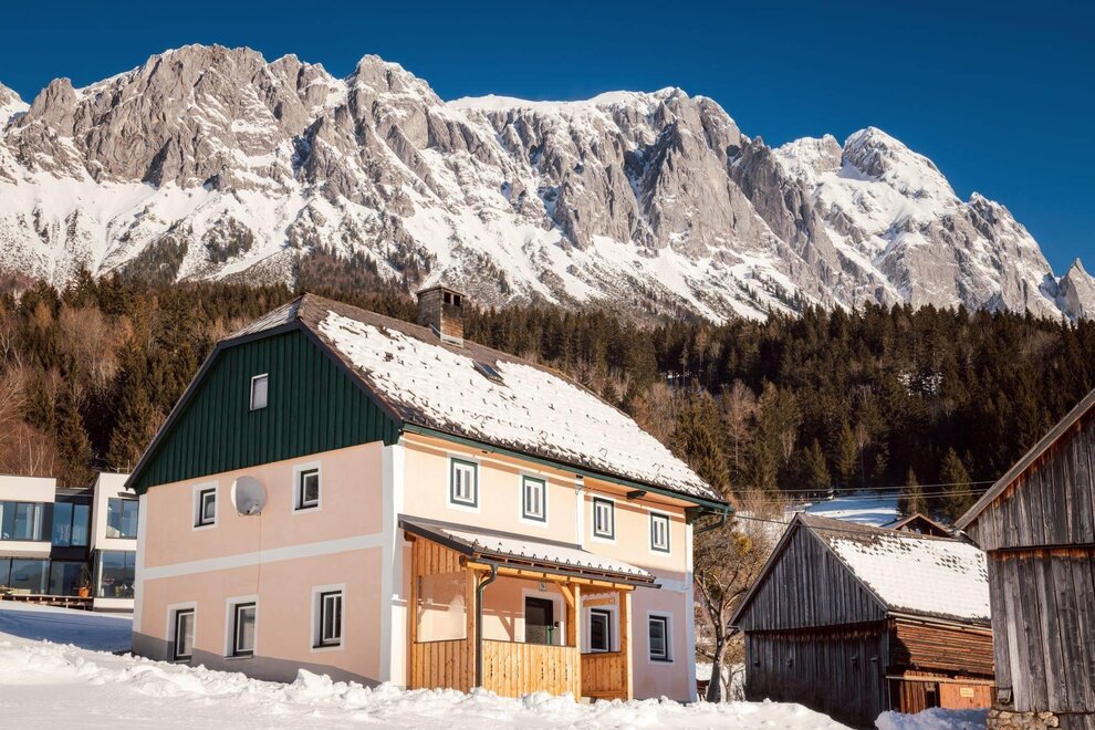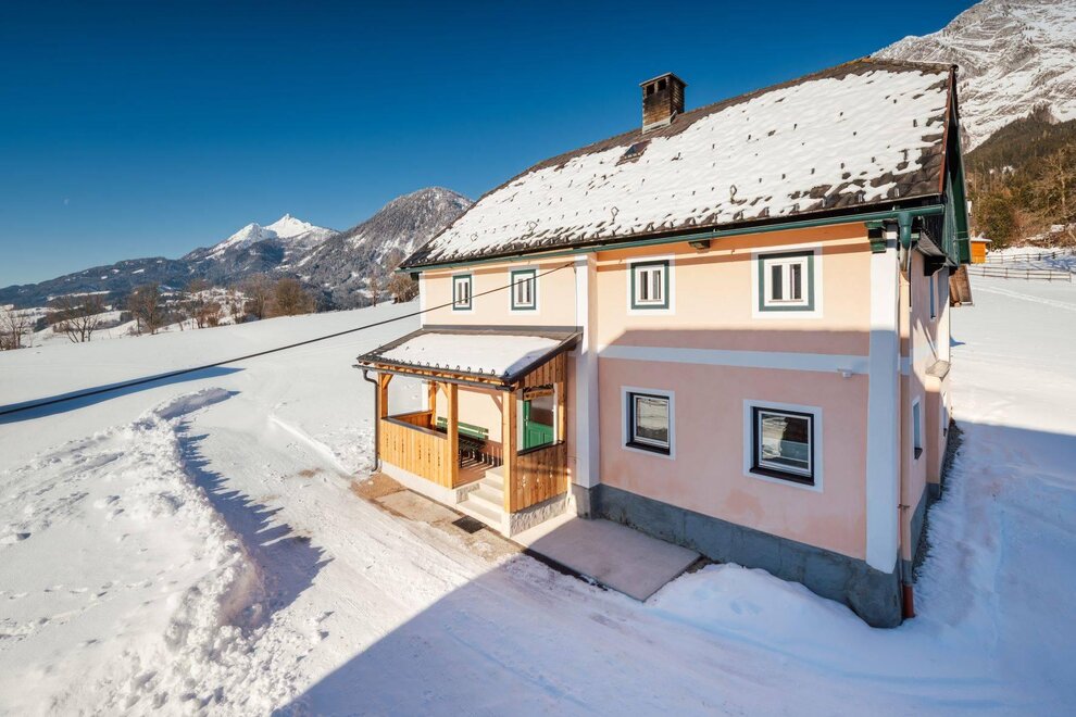 Quaint-rustic, very cozy and lovingly renovated farmhouse, located in a sunny position at the foot of the impressive backdrop of the Grimming, offering stunning panoramic views of the surrounding mountain world. The holiday home is situated in the popular holiday region of Steirisches Ennstal, in a quiet yet central location in the village of St. Martin am Grimming at an altitude of 716 m. The farmland has not been farmed since 2006. The house, with a total of 110 square meters of living space, features three bedrooms on the upper floor, accommodating 5 guests, accessible via a staircase. In the living room, there is the possibility to use a sofa bed for a sixth guest for an additional fee. All rooms on the upper floor have largely been kept original. On the ground floor, which can be reached by 3 steps, there is an entrance area with enough space for coats and shoes. The large, well-equipped kitchen, which is connected to the cozy living room over two steps without a door, is also located on the ground floor, along with the bathroom and the separate WC. In the entrance area to the bathroom, there is an infrared cabin available for free use. The outdoor area invites you to enjoy on the south side of the house, with a protected seating area in a covered porch, a garden swing, and stunning panoramic views of the peaks of the Schladminger Tauern. For e-bikes, there is a lockable garage with charging facilities. Additionally, there is a large area around the house for children to play, sledding in winter, or simply relaxing. At the small farm in the neighborhood, there is the opportunity to occasionally observe animals. A beekeeper with product sales is also located right next door.