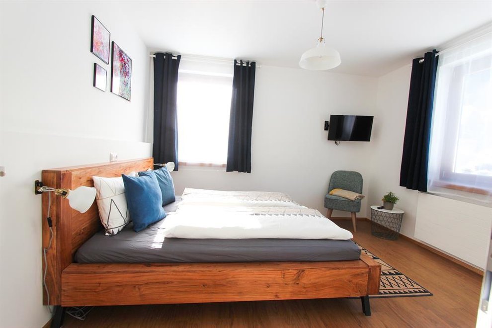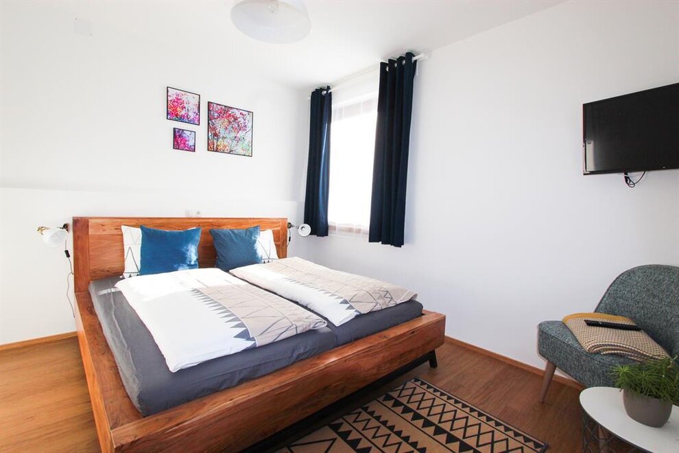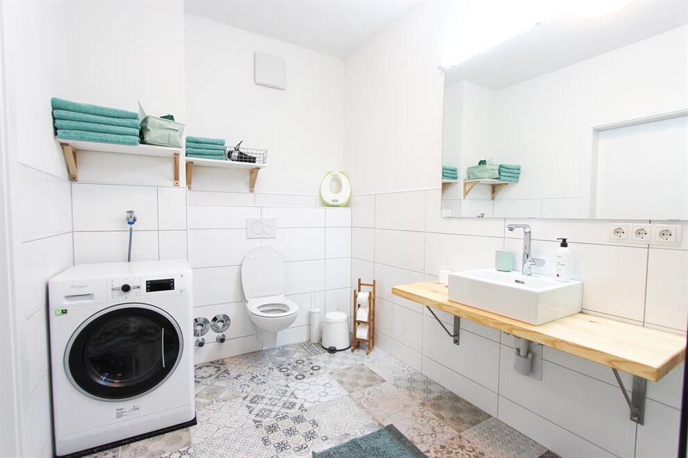 The apartment consists of two bedrooms, a living room with a fully equipped kitchen, and a sofa bed for one person. All rooms are equipped with a LED TV. Wifi is also included. The bathroom is equipped with a shower (90 x 90 cm with shower chair), toilet, hairdryer, towels and a washer-dryer. Bed linen is available. A travel cot and high chair for babies and toddlers is also available.