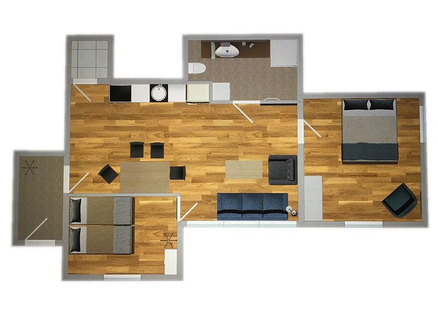 Size 64 m² Occupancy 1 - 4 adults , 0 - 4 children Rooms 3 Bedrooms 2 Room details