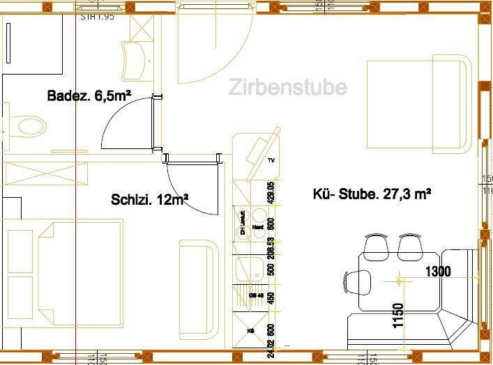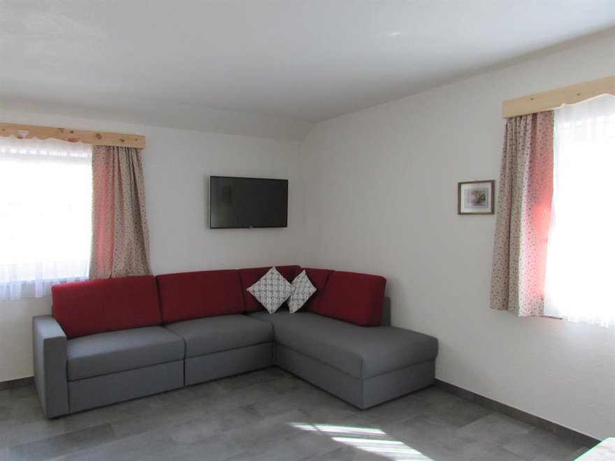 In this holiday apartment, there is a bedroom, a bathroom with a toilet, and a living kitchen with a pull-out sofa. The holiday apartment is furnished with Swiss pine wood. It is very bright with three windows in the living area.