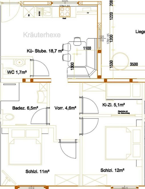 The holiday apartment "Herb Witch" is equipped with three bedrooms (one of them with a bunk bed), a bathroom, and an extra toilet. The holiday apartment is very bright and friendly furnished.