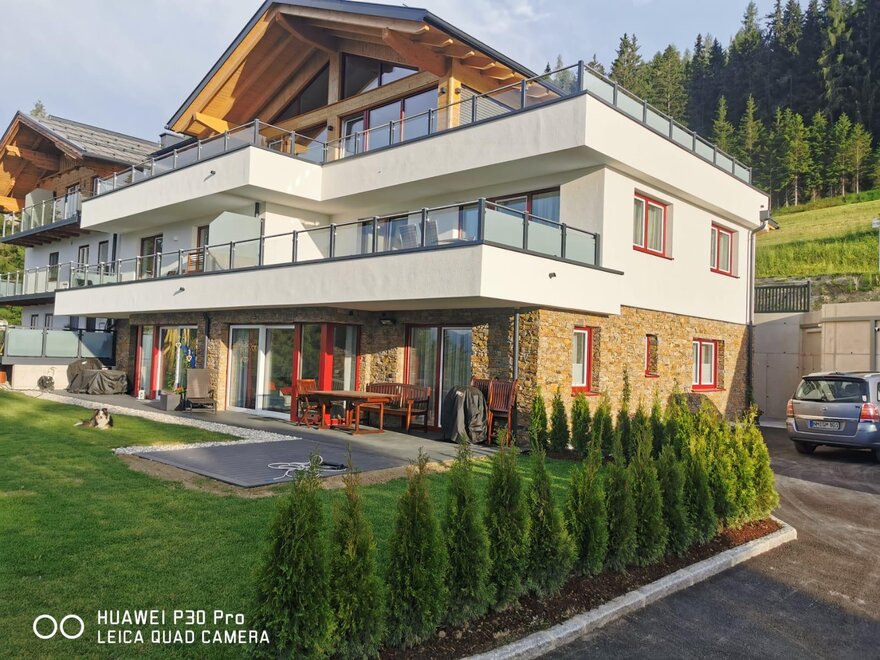 Drive from Schladming up to Rohrmoos. After about 3km you will come to a roundabout. Go straight on past the Rohrmooser Erlebniswelt. After another 1.5 km you will come to the Hochwurzen summit lift. Drive about 500 m through further through a small wooded area. Our house is then the first on the right-hand side.