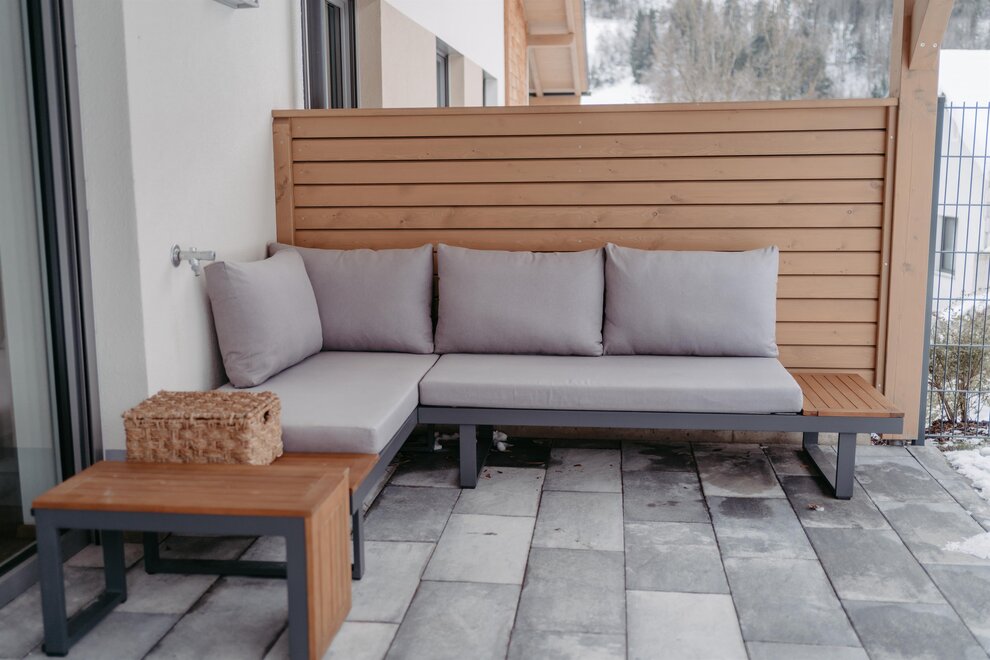 Two separate bedrooms with TVs, bathroom, fully equipped kitchen, living room with sofa bed, washing machine, free car parking for 2 cars, garden with terrace set, heated ski cellar, 5 paws certified accommodation by Pfotencheck