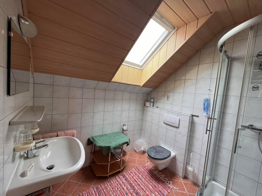 shared shower/bath, no. of toilets: 1, running hot/cold water, separate toilet