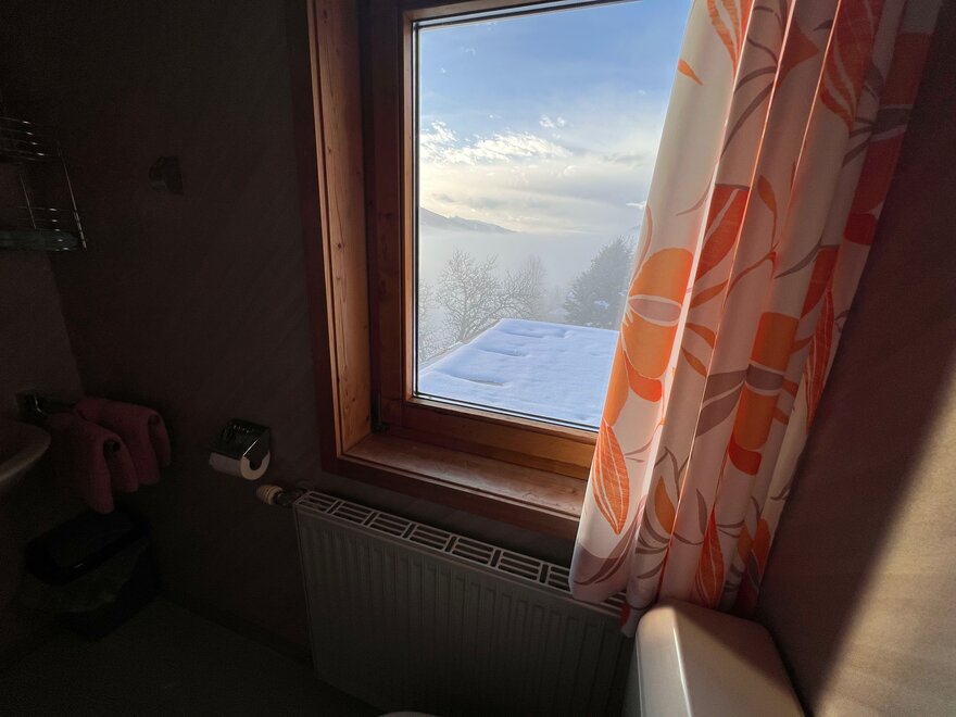 It features a bright living and kitchen area that leads directly to a small terrace with a breathtaking view of the valley – perfect for a cup of coffee in the morning or a glass in the evening.