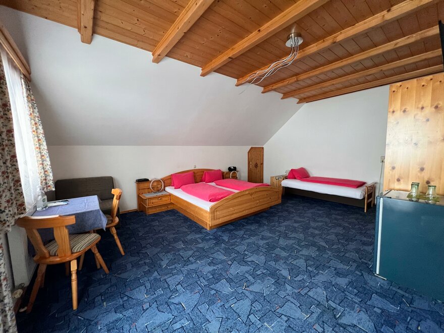 The children can experience rural life up close on our farm – chickens, cattle, sheep, and our friendly cats are waiting to be discovered. For the little ones, there is a sandy playground as well as indoor games, while the adults can relax in the spacious lounge. Our comfortable rooms with breakfast, many with splendid views, ensure restful nights.