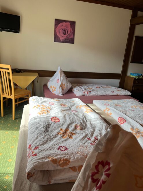 Our south-facing, comfortable guest rooms are all equipped with a shower, toilet, satellite TV, and balcony. With a wonderful view of our mountain world, you start your vacation day in a good mood.