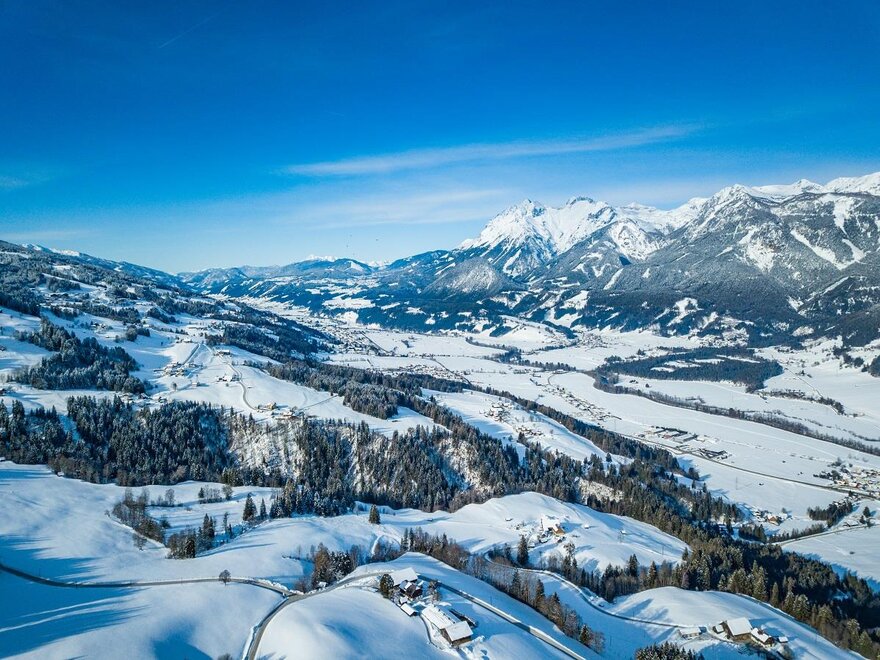 Our house is situated on the Gumpenberg, at about 900 m above sea level, in a quiet location with a wonderful view of the Dachstein massif and Kufstein. It is rustically furnished, has a cosy lounge with satellite TV, tiled stove, 3 beautiful rooms, rich breakfast and is very family-friendly. 1,5 km distance to the 4-mountain ski area Schladming-Dachstein.