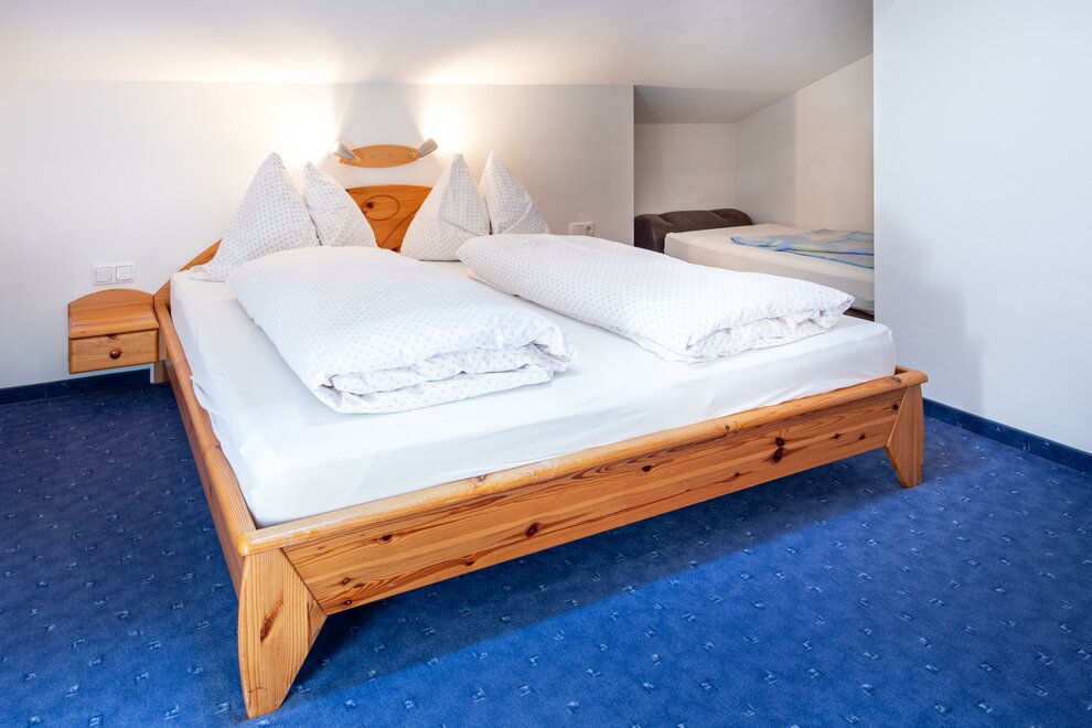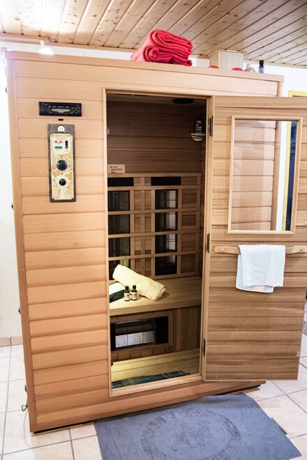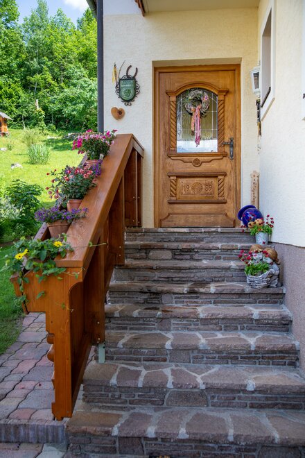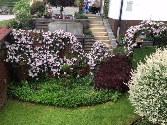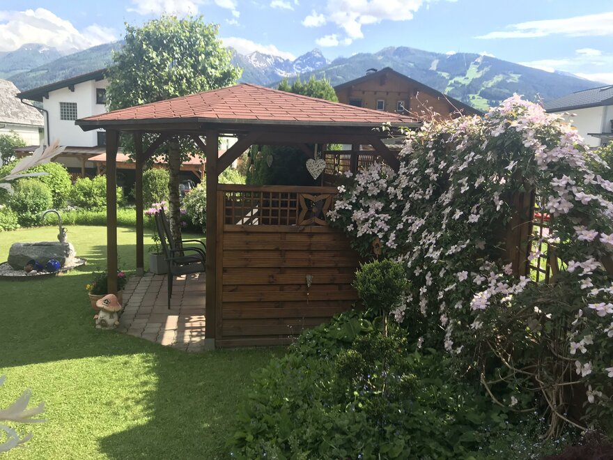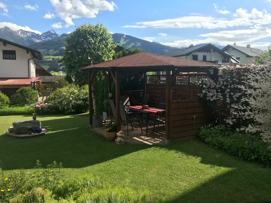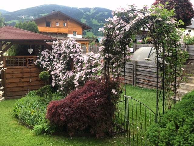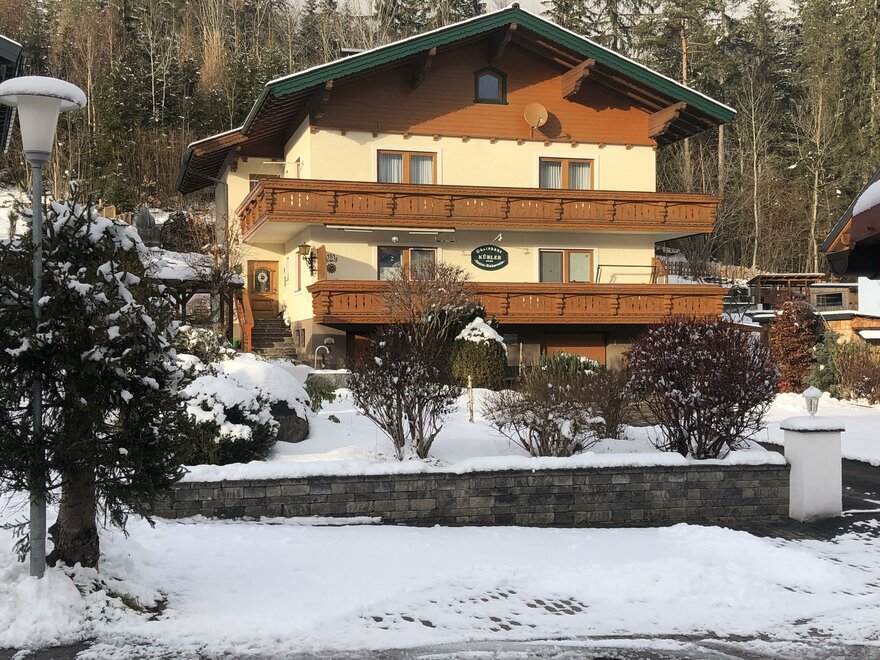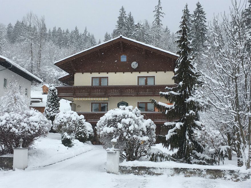 Our house lies in a sunny, quiet location. 3 spacious comfort rooms for 2-4 people, also as an APT for 6-9 pers. and 1 APT for 2-4 pers. Infrared sauna, fitness room, guest kitchen, delightful garden with playground & grill. 50m from the ski-bus stop!