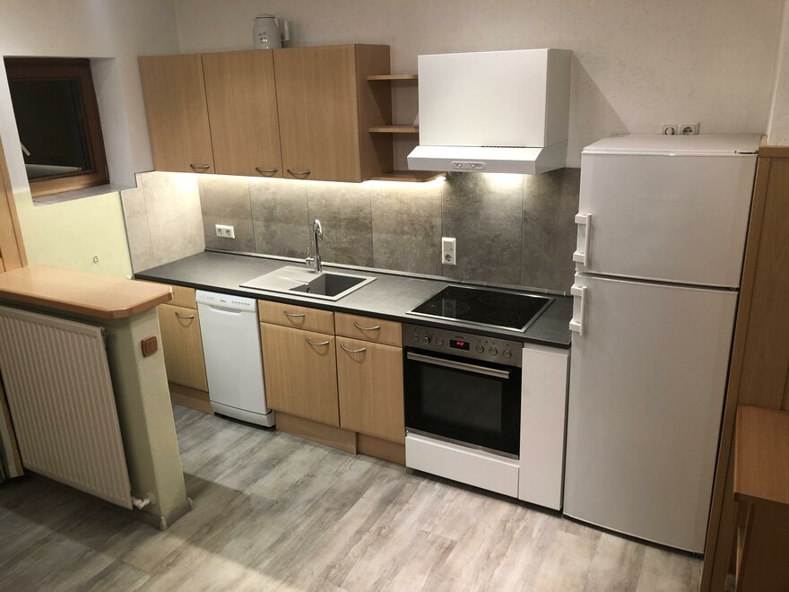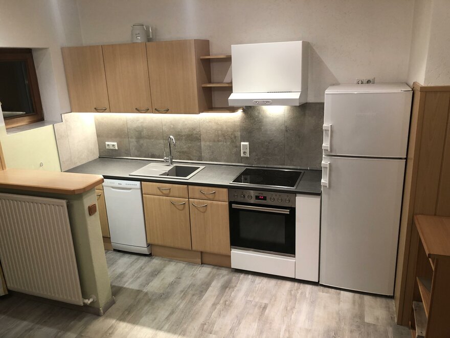 furniture suite, kettle, high chair, essentials (towels, bed linen, soap, toilet tissue), freezer compartment, kitchen and table linen, microwave, radio alarm, electric stove, dishwasher, internet connection available, island kitchen, separate bedroom/s: 2, radio, cooking possibilities, kitchenette, towels available, refrigerators available, bed linen available, non-smoking room/apt., vent hood, additional room, dishes available, kitchen utensils, central heating, refrigerator, dish sink, satellite TV, garden furniture, WiFi, TV, coffeemaker, hairdryer, oven