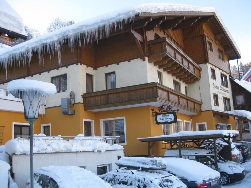 Our house is characterized by its favorable location next to the valley station of the Golden Jet Planai and the Rohrmoos 1 chair lift. The town center is reachable in only a few min. by foot. Be pampered by our much praised cuisine. Winter packages in the PS/MS/LS from Euro 593,00 per week. Brkfst buffet. CD: 2-6 yrs. old -50%, 6-14 yrs. old -30%, single occupancy surcharge Summer: Euro 15 Winter: 20. short stay surcharge. Sommercard included in price!