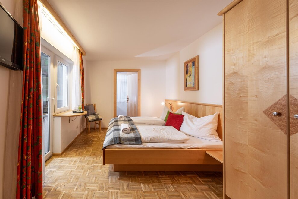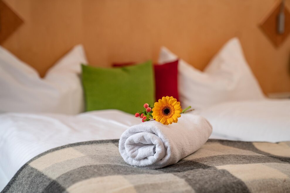 The cozy double rooms have been designed, built, and lovingly furnished with functionality in mind. They fulfill everything that the heart desires and needs. A lot of real wood contributes to a pleasant living experience.