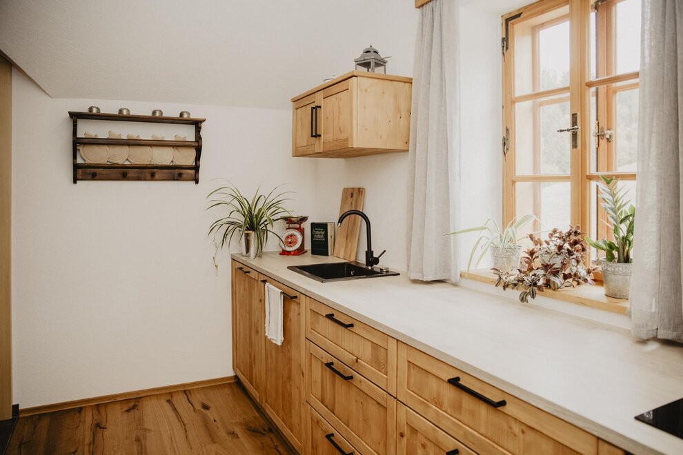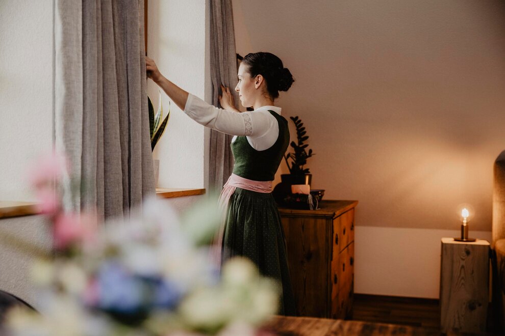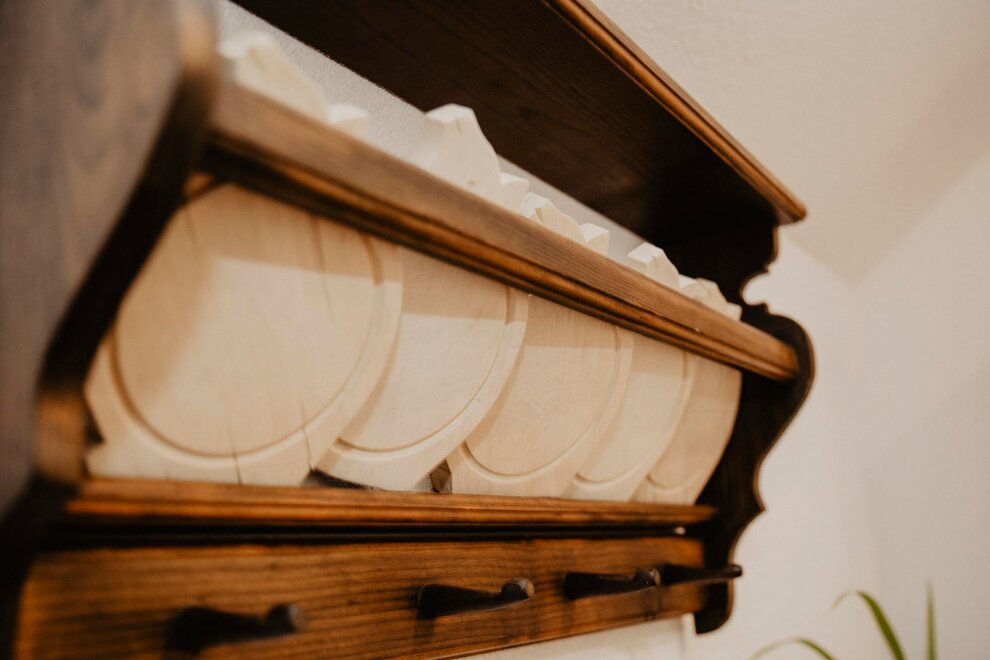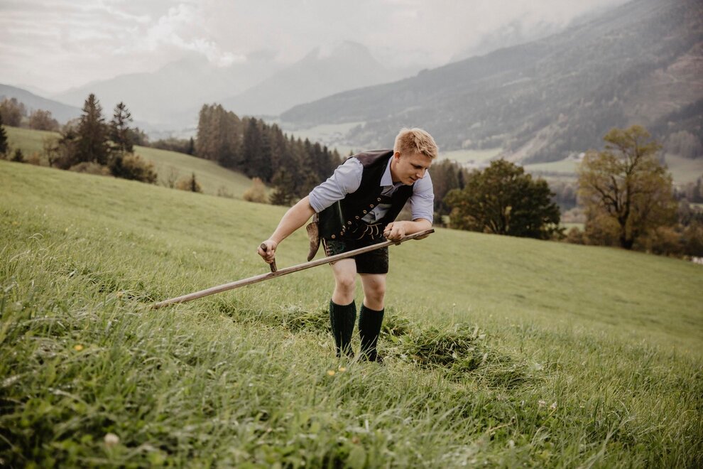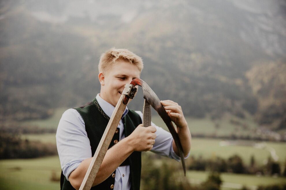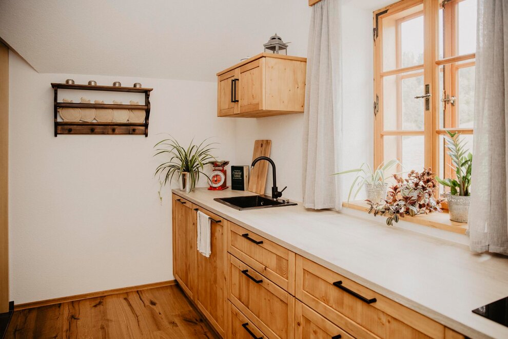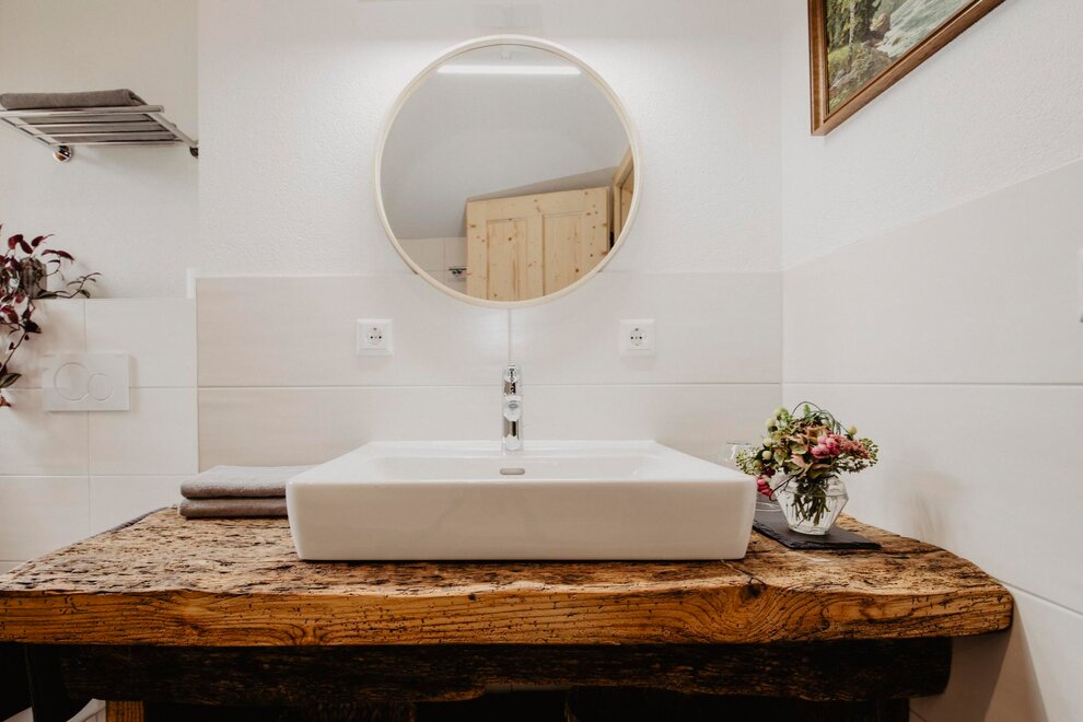 Nearly 100 years ago, our farm was awakened from its slumber. Tradition and modernity meet not only in the management of the farm, but also in the furnishing of our house. Countless hours of work have turned the farmhouse into a true jewel and a place to arrive and feel at home. Many objects already carry a wonderful story and invite you to write new holiday stories. Through the box windows you can see oxen grazing, wild animals at the edge of the forest and the rugged rock faces of the imposing Grimming massif, the highest free-standing mountain in Europe.