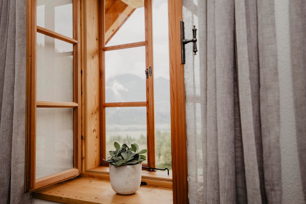 The generous view from the self-made box windows reaches to Grimming and Dachstein, over the Ennstal valley down to the Gesäuse.Room/apartment features