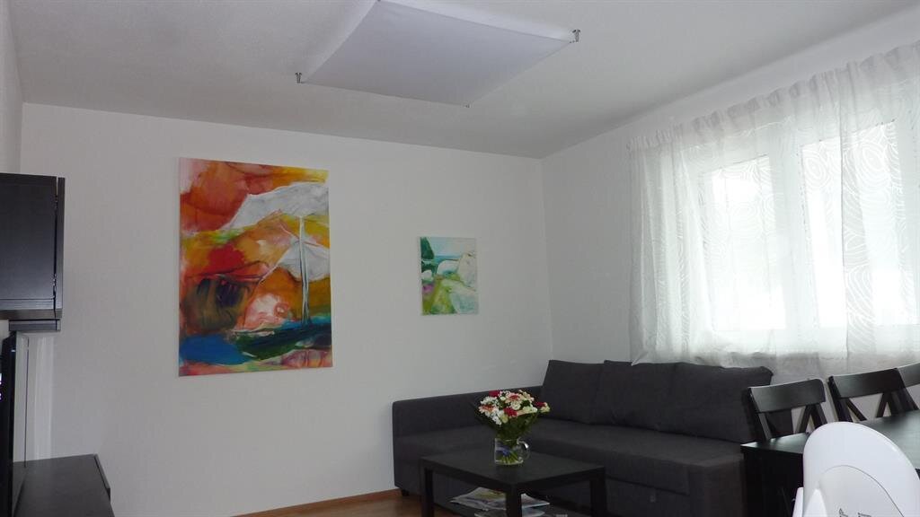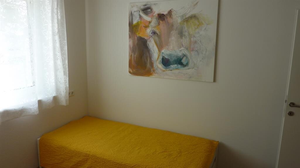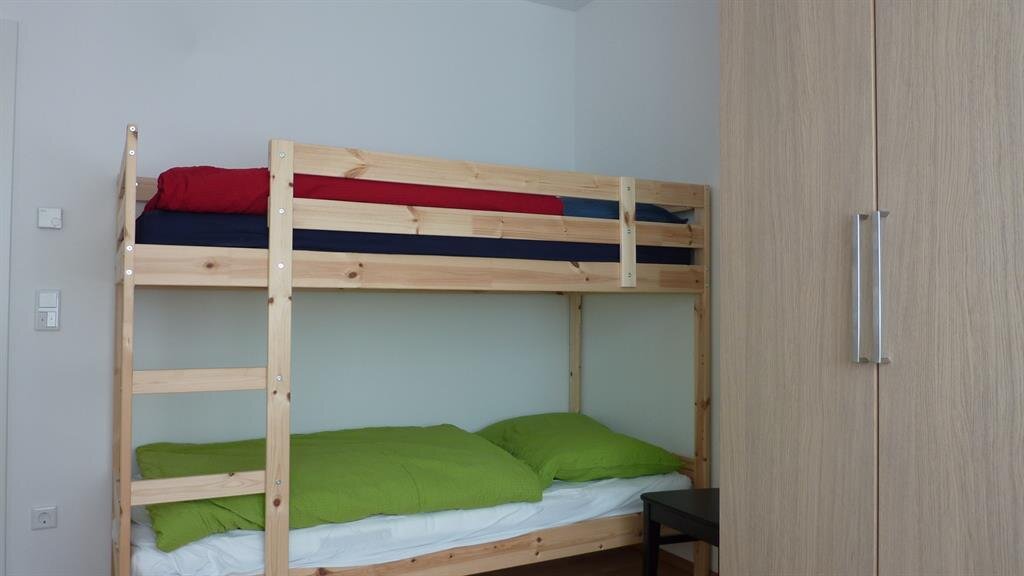 The large family flat is comfortably and modernly furnished. The two bedrooms share a bathroom with WC. A separate WC is also available. The large eat-in kitchen is modern and equipped with all the accessories you need for a holiday - including a Nespresso machine, washing machine/dryer and dishwasher. The living room invites you to relax on the large sofa bed. A cot for the youngest guests can be provided.