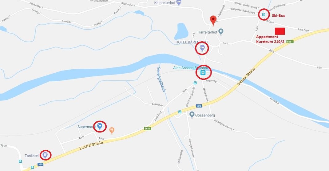 Coming from Salzburg Ennstalbundesstraße B320, first entrance left through the village over the railway and over the bridge, straight ahead uphill, following the right-hand bend to the crossroads. Then straight ahead again towards the main road, turn sharp right - Piererdorf.
