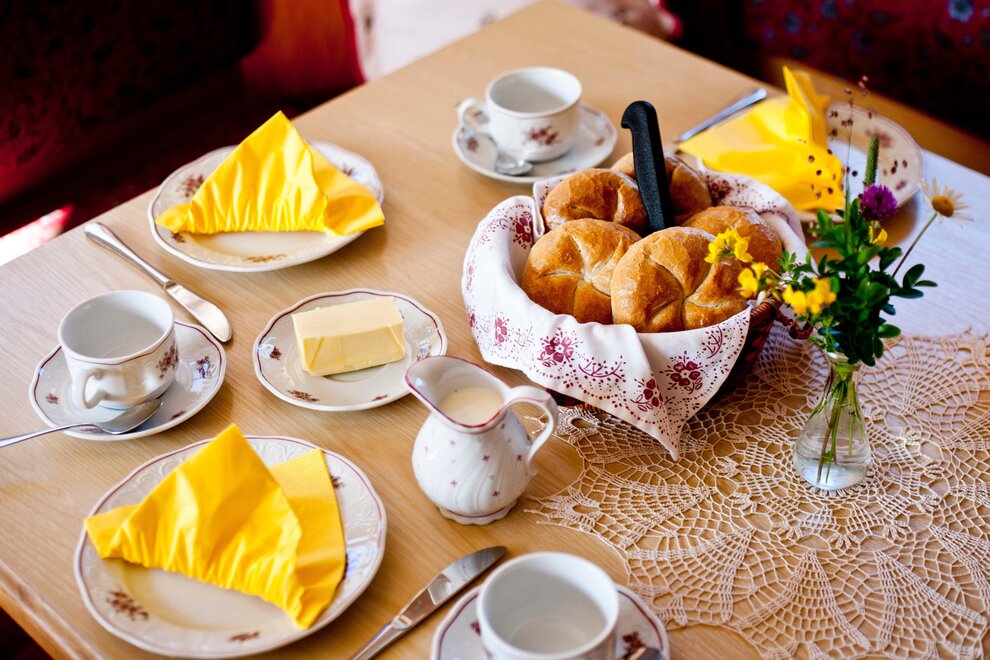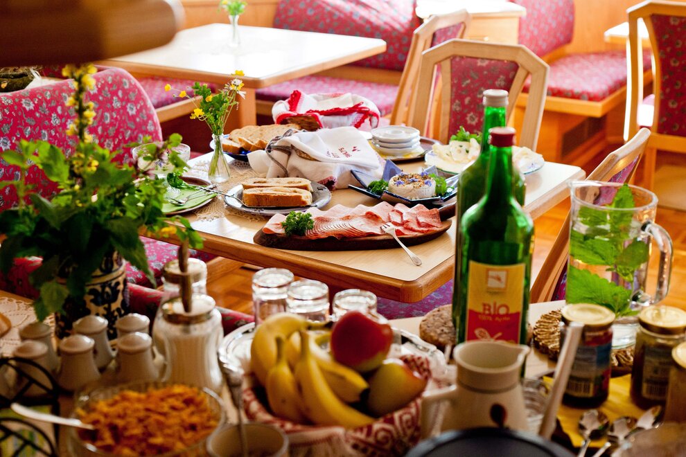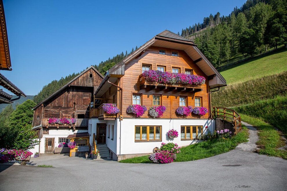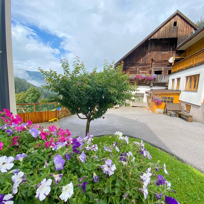 Experience hospitality right from the heart. At the organic farm Grundlehnerhof in Ramsau am Dachstein you can find everything you would want for your holidays. Enjoy a quiet and peaceful area surrounded by the magnificent mountains at the outskirt of the village. Our pension is only 7 km away from the Dachstein glacier Valley Station and about 4 minutes from the center of Ramsau am Dachstein. Access to the cross-country skiing tracks and winter hiking trails are right beside our organic farm and are suitable for the whole family. You can reach the Rittisberg of the Skiregion Ramsau in only 2 km. There is a ski bus free of charge going to the main ski resort of Schladming-Dachstein and the main ski mountains Planai, Hauser Kaibling, Hochwurzen and Reiteralm. The bus stop is located nearby the house. The solid wooden rooms are bright, very comfortable and suitable for guests with allergies. The spacious double rooms with shower, toilet, SAT/TV and a sunny balcony (on request) are made of first class material which is a traditional home spruce and is brushed natural. WiFi is available in the entire house and free of charge for our guests. „Close to nature at any season“ - homemade products from the family owned farm are probably the icing on the cake. In the mornings you get an organic breakfast buffet with homemade wood oven bread, oatmeal which you can crush yourself, fresh milk, cream cheese, yogurt, traditional pastries jam and honey from our own apiary. You can start every day with energy and joy at the organic farm in Ramsau am Dachstein in Austria. At the organic farm there are also cows, calves, cattle and cats which are happy to get petted by children or adults. Especially kids can have lots of fun at the farm and in the barn. You can use our cozy guest room at any time of the day. There you can relax, read, play games and have fun together. Enjoy the mountains during your summer holiday with hikes, climbing trails, mountaineering and walks perfect for the whole family. Mountain bikers and E-bikers will have a unique experience at one of the tours through Ramsau and will be accompanied by the breathtaking scenery of the Dachstein. The beautiful winter landscape at the sunny high plateau of Ramsau am Dachstein is perfect for cross-country skiing, skiing, winter hiking, snowshoeing, sledding and many other things. Or just enjoy a ride on a horse sleigh with a stop in one of the traditional huts. You can look forward to an authentic holiday in Austria. Enjoy a holiday in harmony with nature at the organic farm Grundlehner in Ramsau am Dachstein Your host family Perner