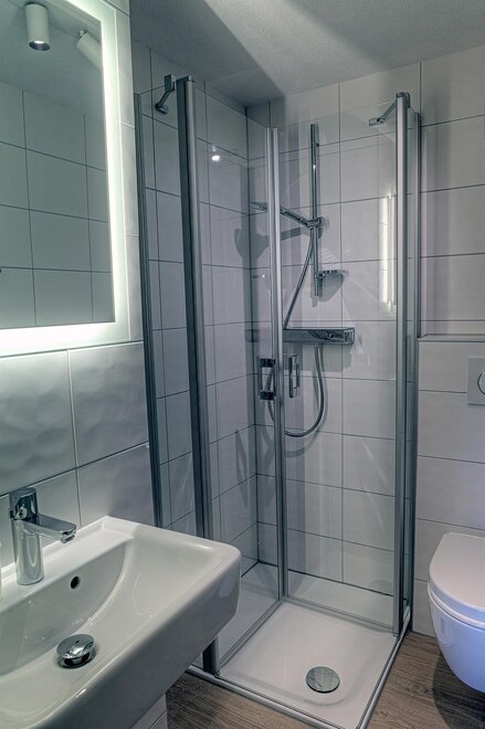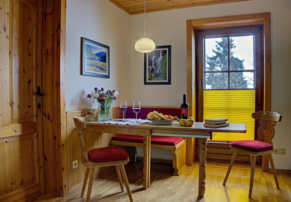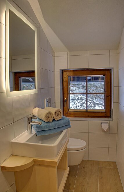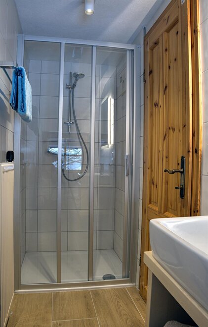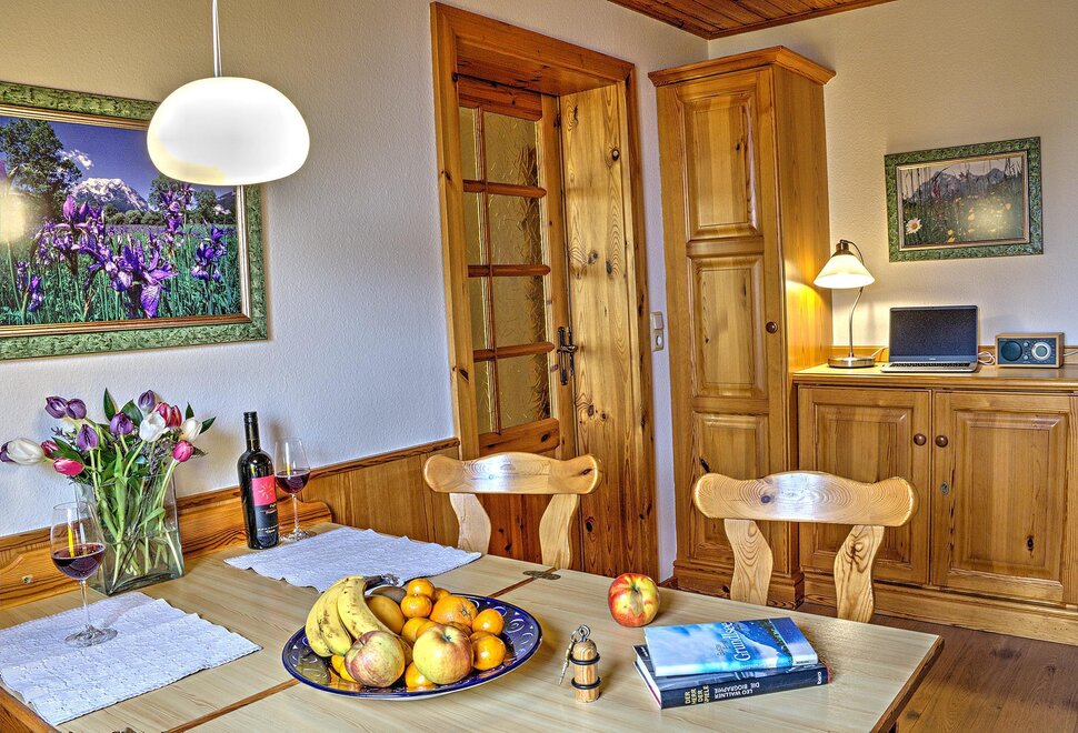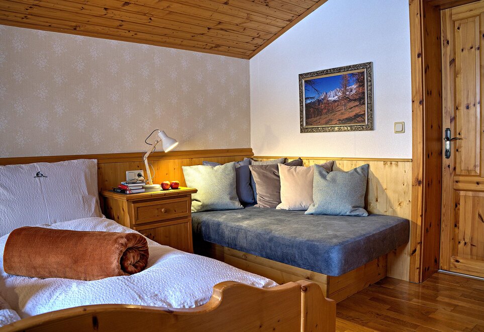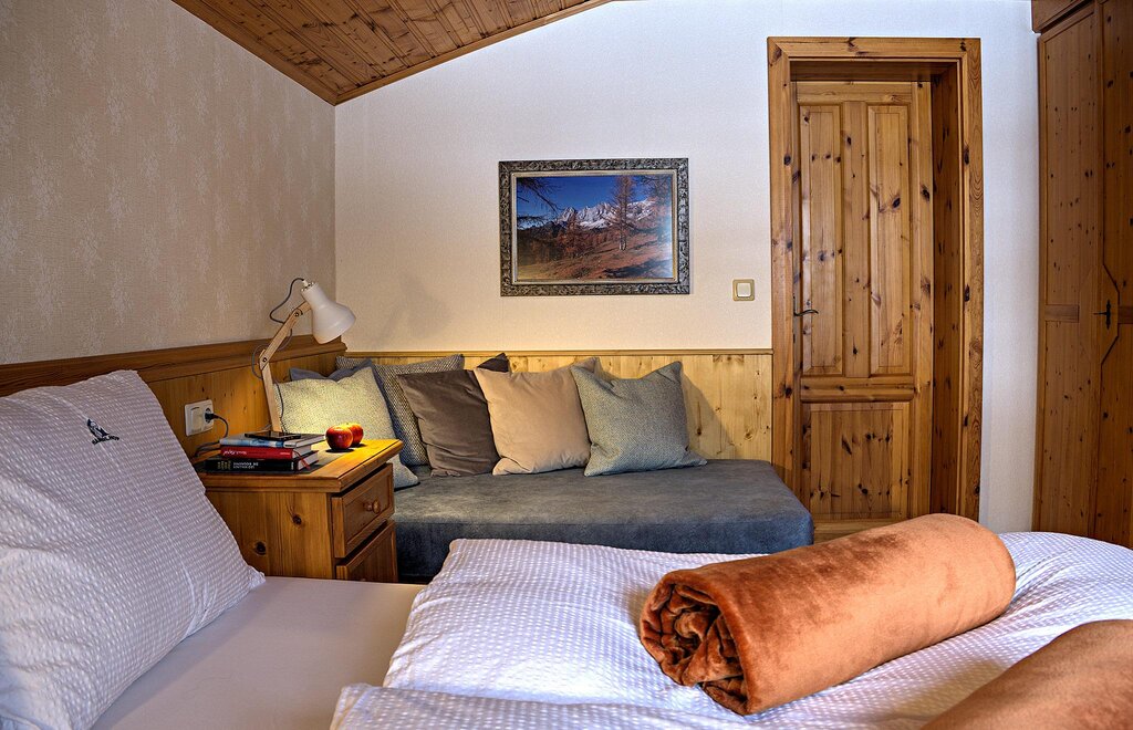 App:3 2-4 persons - approx. 525 sq.ft. - 1 small anteroom – 1 living area with kitchen - 1 bedrooms for 2 persons - 1 bedroom/living area - bath and toilet - sunny balcony with great view of mountains and valley;