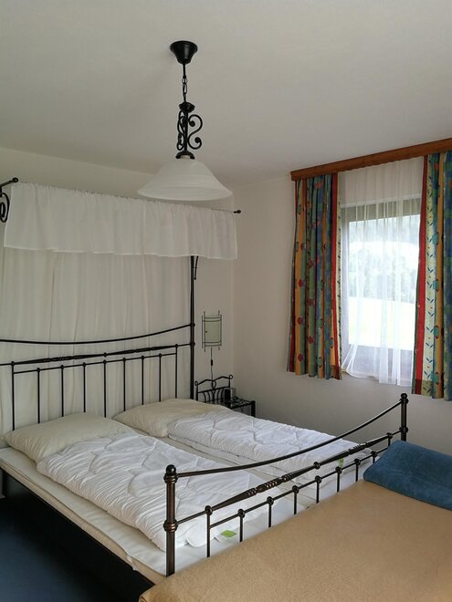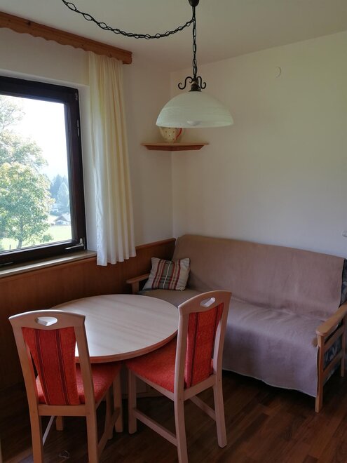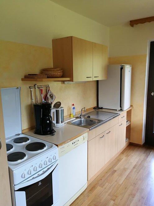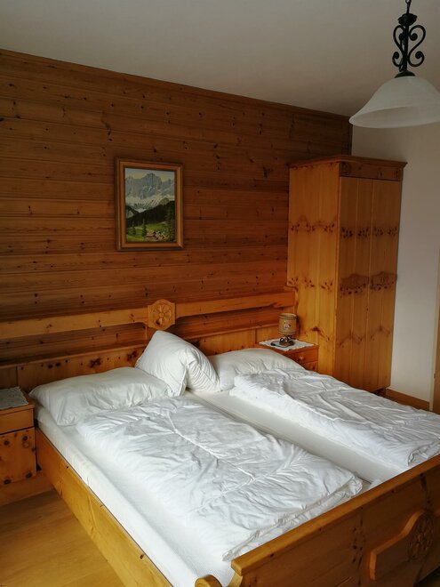 Arrive and relax - this is what you can do best with us, the Kirchgasser family, in Haus Elsa in Leiten district of Ramsau am Dachstein in the Schladming-Dachstein region. Our house is nestled in lush green meadows and in winter in glittering white, where on the 1st floor a cosy, sunny and lovely furnished apartment awaits you and your family and friends to linger. The apartment has 3 bedrooms and 3 bathrooms, where the WC is always separated. The well-equipped kitchen-living-room invites you to spend convivial hours with your loved ones. In order to start the day perfectly in the morning, we offer a roll service for you. Simply let us know the day before which pastry we can order for you. In the morning it hangs on your door handle.