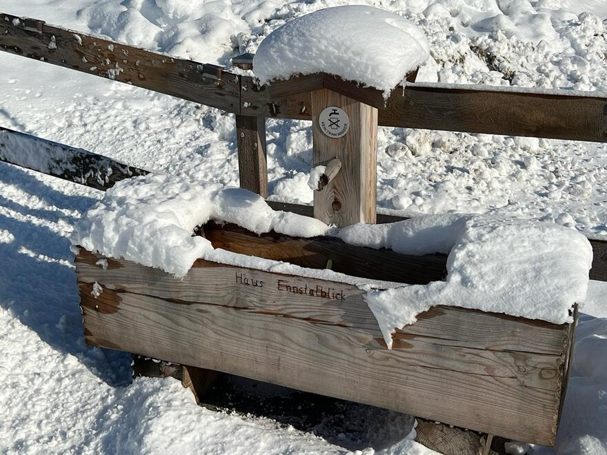 The house Ennstalblick in Assach amid the Schladming-Dachstein - very central and close to the 4-Mountain Ski Swing, but also quiet enough to find peace and relaxation invites you to spend your best time of the year. At 800 meters above sea level and overlooking the beautiful Ennstal you can start amazing hiking tours right from the house Ennstalblick in summer. And you are only just 5 minutes drive away from the first entry of the 4-Mountain Ski Swing, the Hauser Kaibling. So the small, homey place Assach is the ideal starting point for your winter holiday but also for numerous activities and experiences for your summer vacation. The apartment for 2-6 persons consists of three modern rooms, each with a double bed, shower, toilet, hairdryer, TV and Wi-Fi are provided. It furthermore features an anteroom and a fully equipped kitchen with electric hob, extractor, microwave oven, toaster, kettle, coffee capsule machine, fridge-freezer, crockery and dishwasher. In summer you will find peace and relaxation while lying in the sun in front of the house with an amazing view over the Ennstal and if you love variety you will find relaxation, fun, entertainment and action in the Freizeitseeanlage Aich which is only 2 km away. The Hauser Kaibling is only 5 minutes drive from house Ennstalblick away, and to the bus stop it is just a 3 minute walk, so our apartment is the ideal base for skiing in the Schladming 4-mountain ski area. The Hauser Kaibling offers alongside the most beautiful slopes along with the surrounding mountains Planai, Hochwurzen and Reiteralm an unlimited skiing on 123 km of slopes. The closest town Schladming can be reached in 10 minutes. With enough snow the trail entrance of Ennsloipe can be reached in just 3 minutes. The Ramsau with the Nordic Eldorado offers 220 km of cross-country skiing and it is just 15 minutes away by car. Who wants to have the winter cozy, enjoys variety in winter hiking, sleigh rides, sledding and ice skating in the nearby area. Right in town, but also in the nearby area you will find some very good restaurants and a supermarket. A wonderful holiday in our house Ennstalblick wishes you Your host Christiane Rittershofer.
