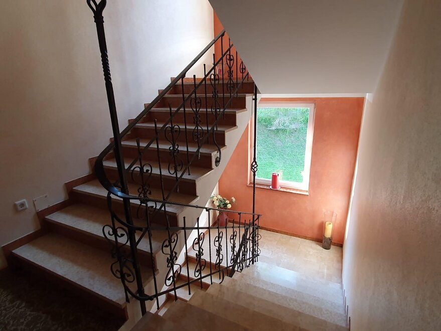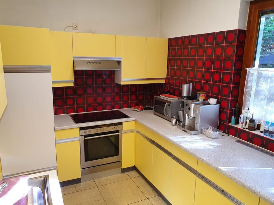 microwave, central heating, no carpet, terrace (some rooms), closet, coffeemaker, bedding, kitchen, dishes available, separate bedroom/s: 0, no pets allowed, satellite TV, refrigerator, TV, use of washmachine, store room, terrace, dryer, essentials (towels, bed linen, soap, toilet tissue), carpeted bedroom, Größe m²: 450, furniture suite, dining room, island kitchen, fireplace, heater, quiet room/apartment, radio, kitchen and table linen, good as new room/apt., WiFi, kettle, living room, oven, balcony, washing machine, meadow, toaster, anteroom, non-smoking room/apt.