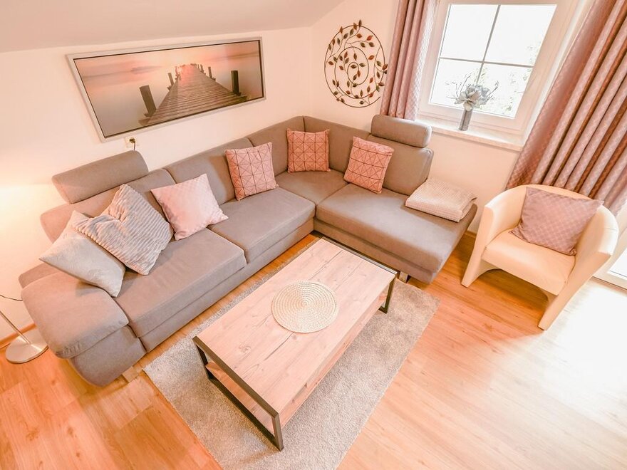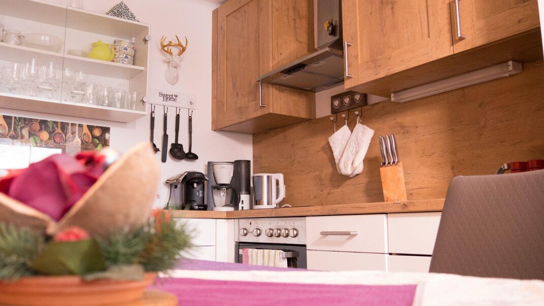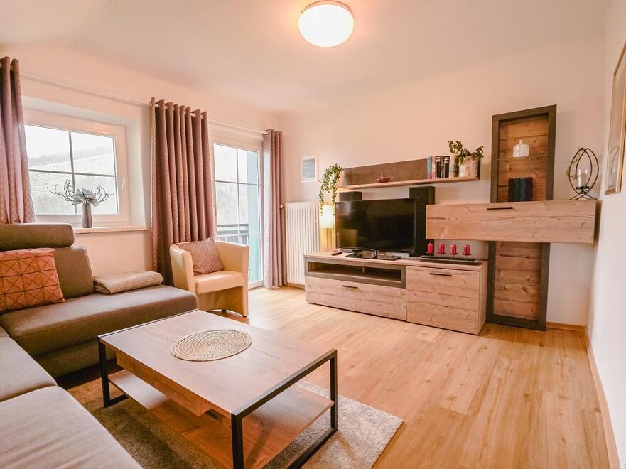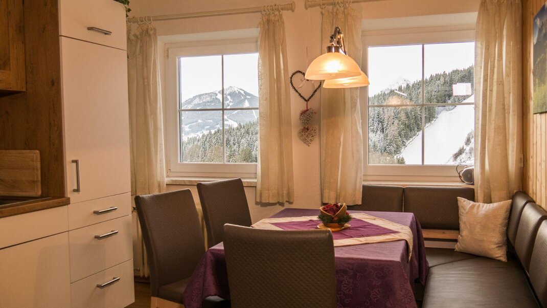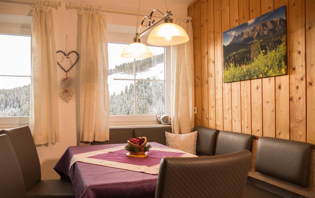 Our holiday apartment in Haus Lisa offers three bedrooms, designed for four to eight people, a cozy living/bedroom with a pull-out couch, and a fully equipped kitchen with an oven, microwave, refrigerator, and dishwasher. We also offer a spacious bathroom with a shower and a separate toilet in the apartment. From every room in Haus Lisa, and especially from the north- and south-facing balconies, you'll enjoy unforgettable views of the Schladming Tauern and the Dachstein massif. Gather with family and friends in the cozy dining area for convivial evenings and reminisce about your eventful vacation in Ramsau am Dachstein. Park your car directly in front of Haus Lisa and, of course, use the free Wi-Fi.