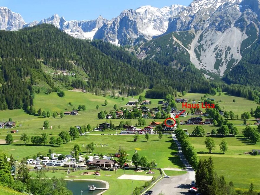 Enjoy a relaxing holiday in our private house, Lisa, in Ramsau am Dachstein, nestled in the Schladming-Dachstein region, with stunning views of the surrounding mountains. We are centrally located in the Schildlehen district of Ramsau am Dachstein, just a few minutes' walk from ski lifts, ski schools, leisure activities, restaurants, cafés, a sports shop, and a toboggan run. The bus stop for the free ski and scheduled buses to the family-friendly Ramsau ski area with Kali's adventure slopes and to the Ski Amadé ski area with the four-mountain ski area of Hauser Kaibling, Planai, Hochwurzen, and Reiteralm, or to the impressive Dachstein Glacier, is right in front of our private house, Lisa. In summer, Haus Lisa is an ideal starting point for numerous hiking, climbing, and mountain biking tours; in winter, cross-country ski trails, winter hiking, and skiing in Ramsau am Dachstein are available to active and relaxation-seeking guests.