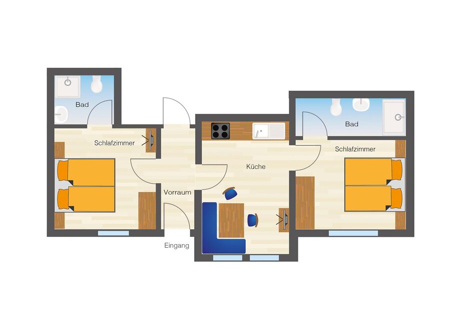 Typ 1: 2-4 persons - 46 m2 - 3 rooms