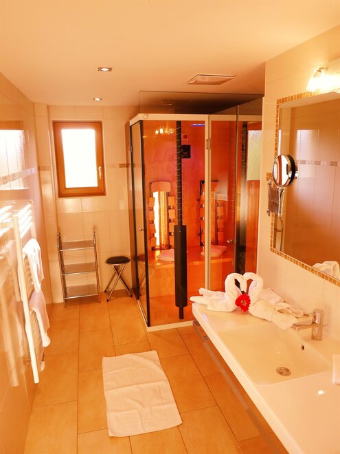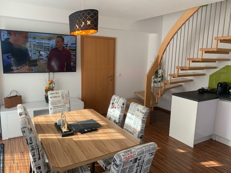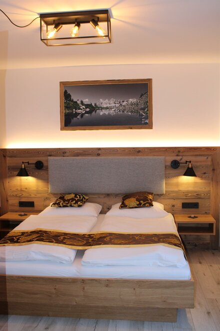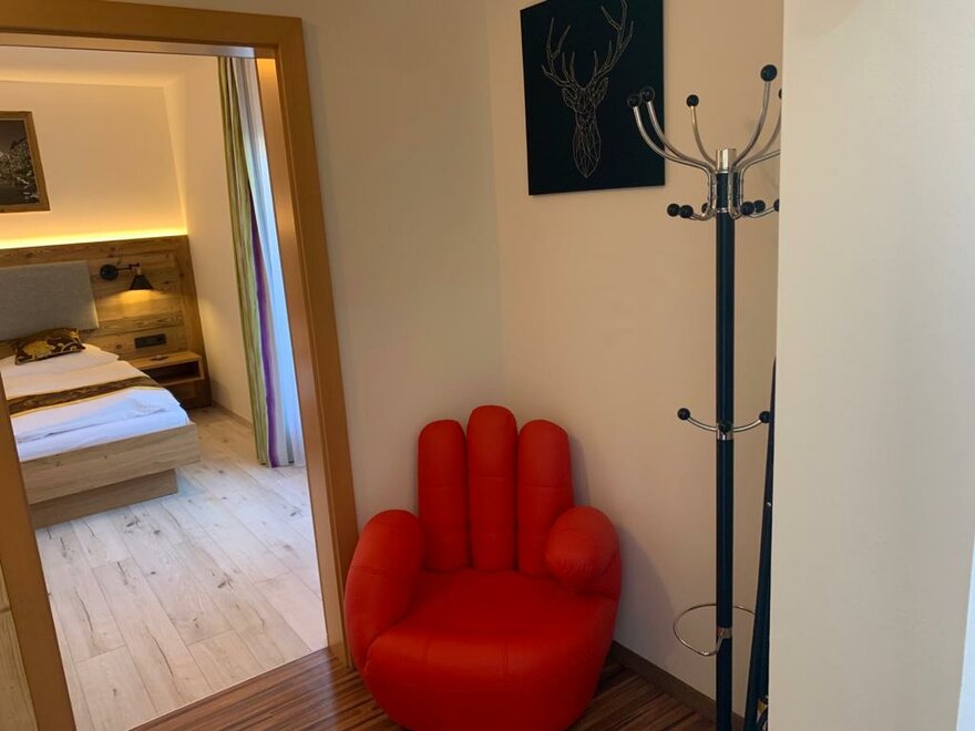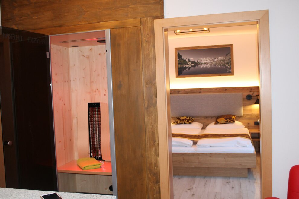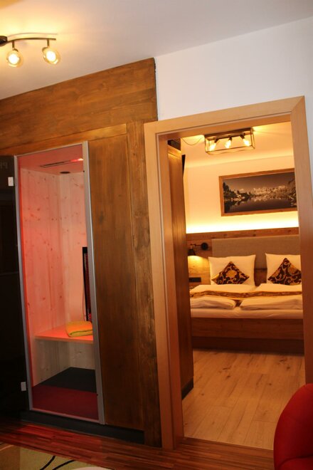 Our Panorama Suite - the dream of a "Holiday Deluxe". The luxurious, cozy and well-equipped maisonette apartment with 95 m² of living space on two floors offers enough space for 4 to 6 people. Wake up in the morning with a wonderful view of the alps. Enjoy a glass of wine on the terrace with impressive sunsets and light spectacles with a view of the Schladming mountains. The infrared cabin invites you to relax after hiking and skiing. For a special romantic break, the whirlpool in the bathroom offers space for 2 people.