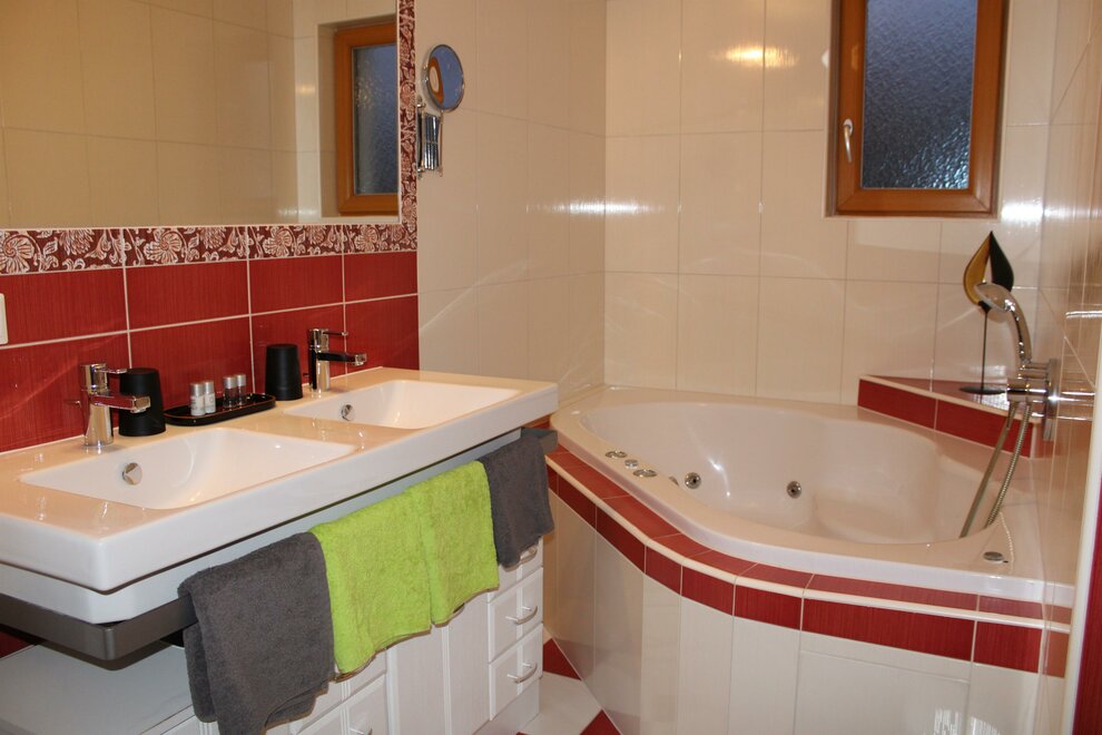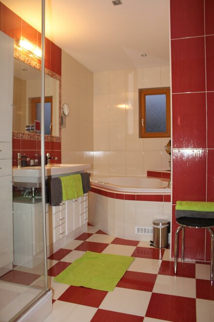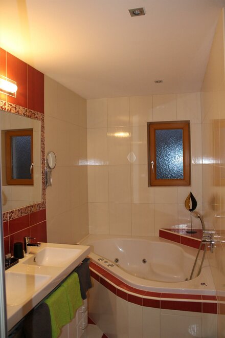 separate toilet, wash stand, bathtub with integrated shower, no. of bathrooms: 2, no. of toilets: 2, running hot/cold water, bathtub, double sink, toilet, bath, toilet, shower, toilet, bath