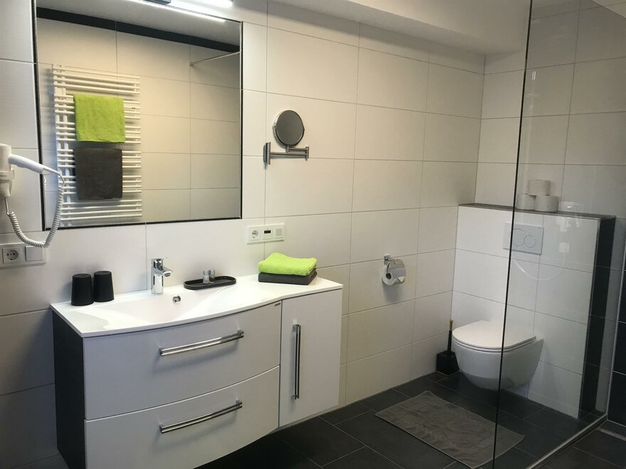 TV, oven, dish sink, closet, kitchen, balcony, garden, carpeted bedroom, toiletries, kitchen and table linen, heater, separate kitchen, combination microwave, refrigerator, essentials (towels, bed linen, soap, toilet tissue), electric stove, dishwasher, freezer compartment, coffeemaker, refrigerators available, non-smoking room/apt., internet connection available, garden furniture, cable TV, separate bedroom/s: 2, dishes available, kettle, family room/apt., bedding, modern furnishing, microwave, WiFi, no pets allowed, vent hood, separate bedroom/living room, hairdryer, safe, Größe m²: 60, quiet room/apartment, anteroom, good as new room/apt., furniture suite, balcony (in some rooms), radio, balcony furniture