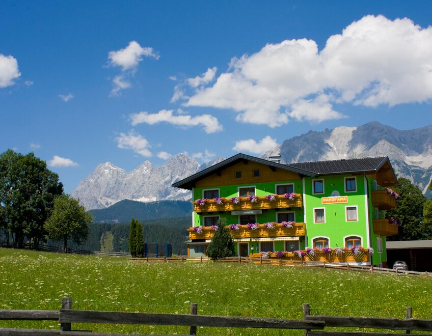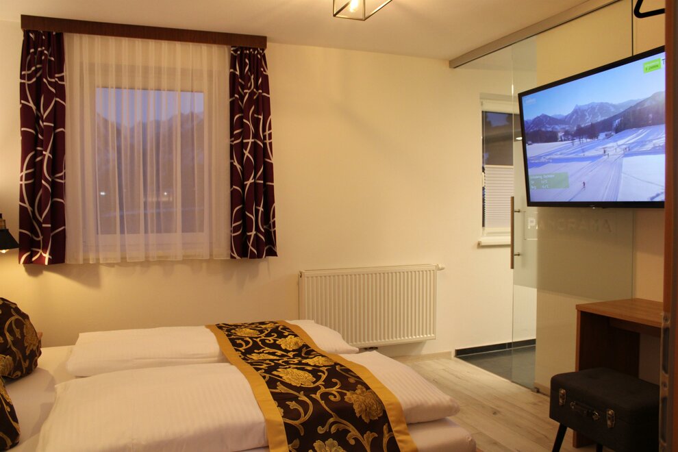 You've earned your vacation – relax in our comfortable APTs with a panoramic view of the Schladming-Dachstein region. Our APTs are equipped with bdrm or livg rm/bdrm, vestibule, kitchen, bath/WC, sitting area with TV, and balcony. For your personal relaxation, you will find an infrared cabin in EVERY APT. Brkfst roll delivery and brkfst buffet upon request. Our motto is "From bed to the slopes" – the slopes are right outside the house. Ski school, restaurants, cafes, disco, and shopping opportunities are 100m away. The bus stop, as a starting point for hikes, excursions, and night skiing is 50m away. Our family-run house looks after your well-being and is looking forward to seeing you.