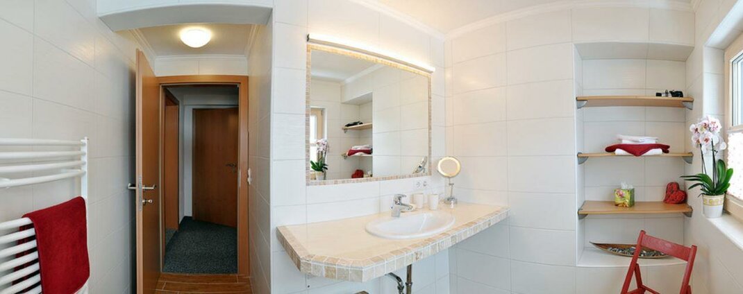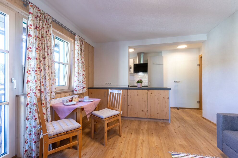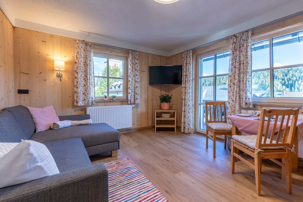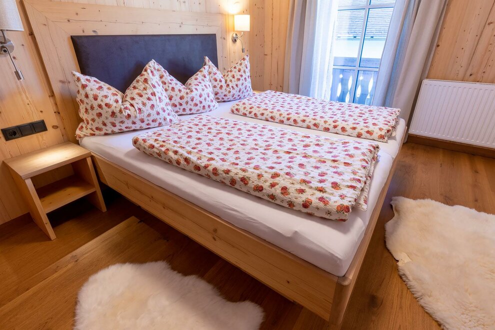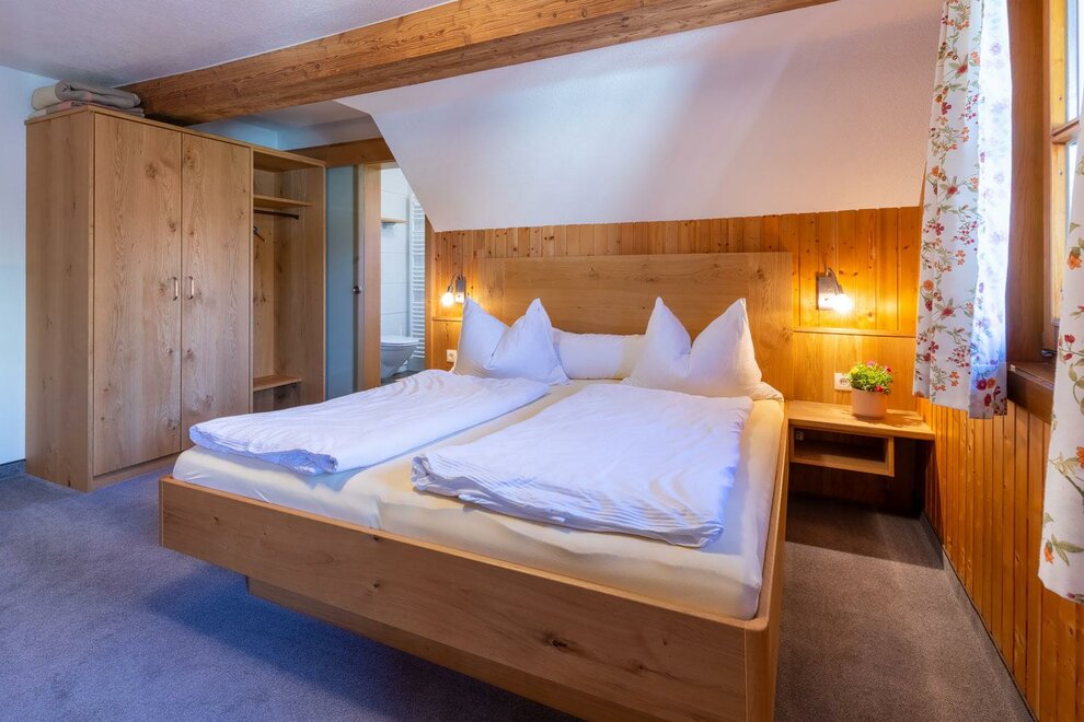 Our Apartment III "Edelweiß" is located on the first floor and is oriented towards the south/east. After its renovation in 2021, the apartment is a sunny and cozy oasis for relaxation. Much wood and a loving decor invite you to unwind and enjoy. A double bedroom with wooden floors and wooden furniture, a spacious bathroom with shower, separate toilet, and a generous hallway complete the "highlight" - the living kitchen facing south with a balcony (south and east). Here you will find a fully equipped kitchen with a dining table as well as a cozy sofa area with a TV corner. The bright, friendly room and the cozy balcony in summer invite you to indulge.