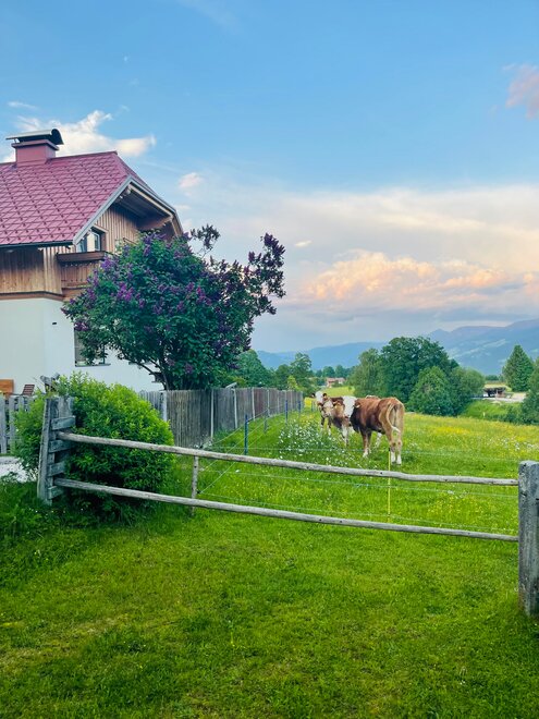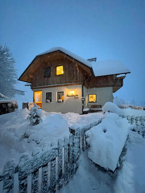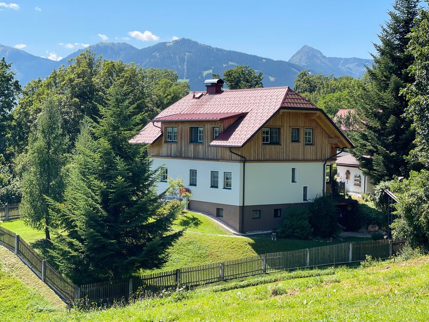 Coming from the main road in Schladming, you will find the turn off on the right side (see the sign for Eggerhof). Follow the gravel road and drive directly or via Eggerhof. The Rosenheim house will be visible on the left side shortly after.