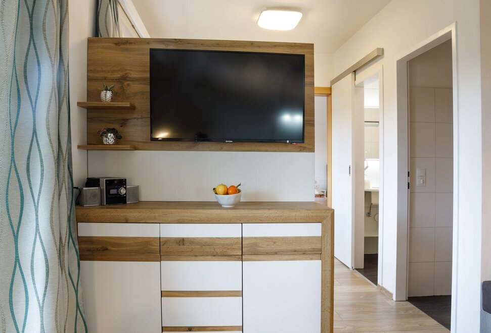 Apartment for 2-4 people with 1 separate bedroom and 1 living room/bedroom, shower/WC, balcony, TV, dishwasher, coffee machine, microwave and radio, free WiFi access