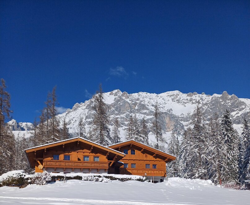 With its gloriously cosy feeling, our house is in a sunny spot less than ten minutes from Ramsau village centre, where you’ll find restaurants, pizzerias, a hairdresser, a grocery store, ski rental, a ski lift, and ski schools. A 15-minute bus ride from the nearby bus stop takes you easily to the Dachstein glacier, with its varied ski runs and ski routes.