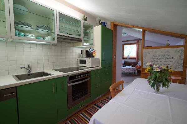 The apartment is located on the 1st floor with its own entrance. The apartment consists of a romantically playful bedroom with 3 beds, bathroom with shower/WC, staircase and anteroom with wardrobe, living room with sofa bed and new kitchen. In addition to free WLAN Internet, satellite TV and radio, the apartment is also equipped with a fridge, dishwasher, microwave, coffee machine, tea maker and an electric stove with oven. The bus stop is just a 5-minute walk away and various supermarkets, restaurants, the tourist office, the post office, a ski and cross-country ski school/rental shop and the ski areas of the Dachstein-Tauern region are also just a few minutes from the house.