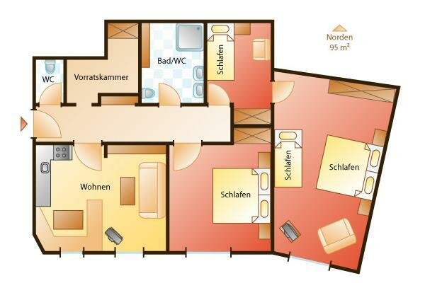 Size 95 m² Occupancy 4 - 8 adults , 0 - 4 children Rooms 3 Bedrooms 3 Room details