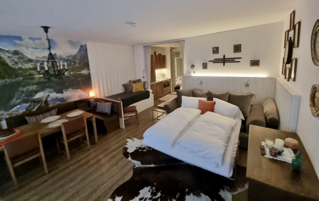 Top 12 is a cosy Alpine flat with a balcony (with wonderful views overlooking Schladming, the Planai and Rohrmoos) and a covered garage parking space. This flat is ideal for 2-4 people, but can be used for up to 6 people.