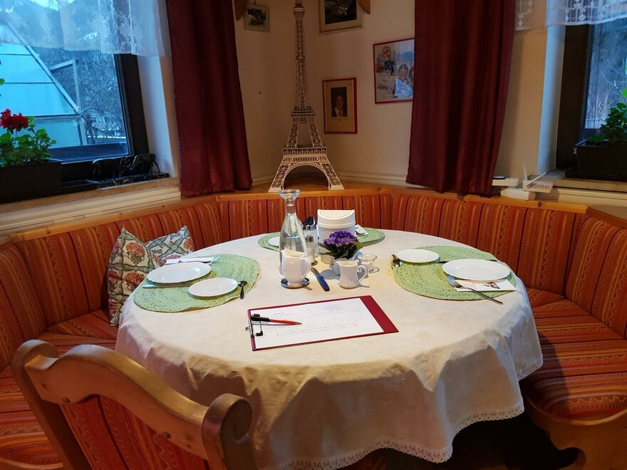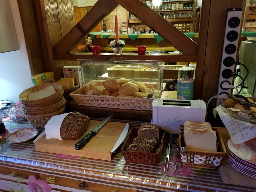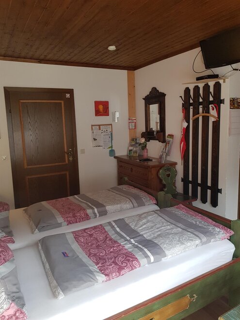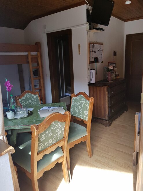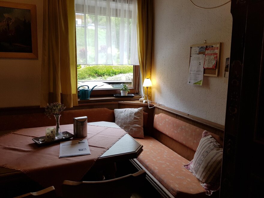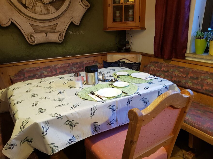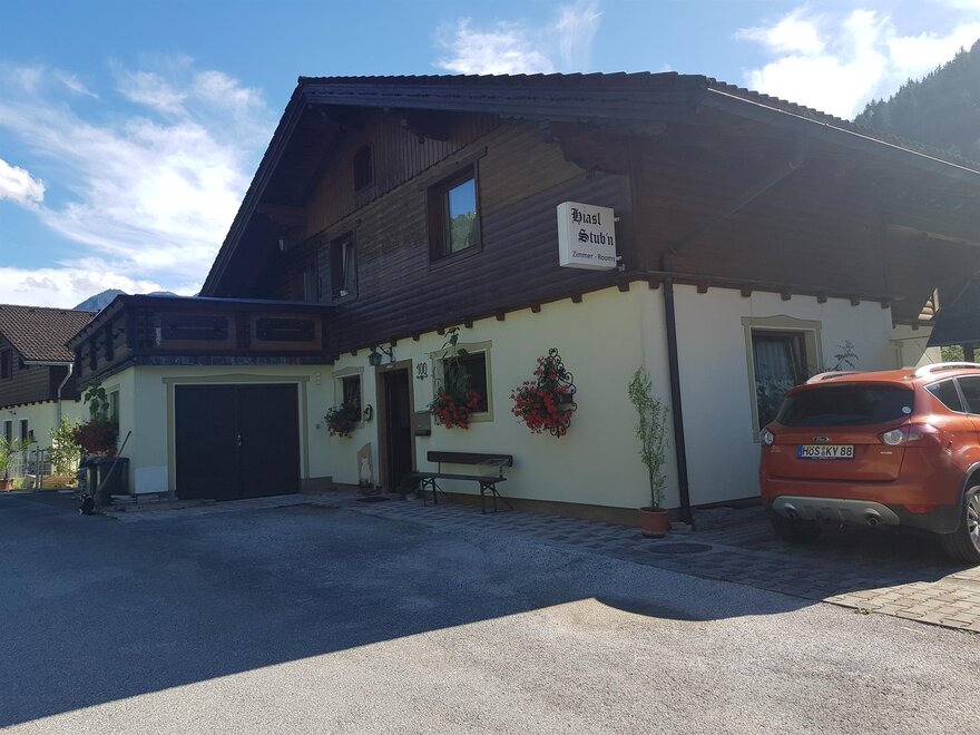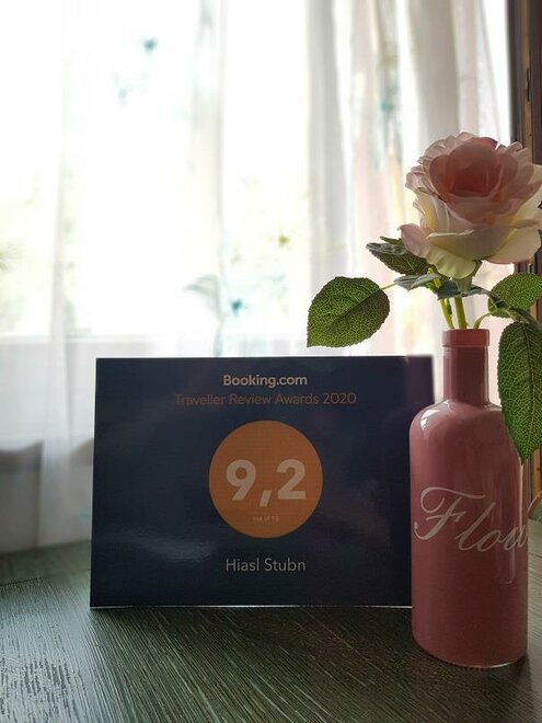 The rooms at the Hiasl Stub'n are furnished with Alpine-style wooden furniture and are equipped with underfloor heating, a seating area, a flat-screen satellite TV, a shower / WC and a balcony with mountain views. We have a double room, a triple room and a family room with an additional bed for two children. The breakfast buffet is served in the historic Hiasl Stubn, an alpine breakfast room with bar and stove. You can also use this room according to your daily schedule and also dinner there after arrangement.