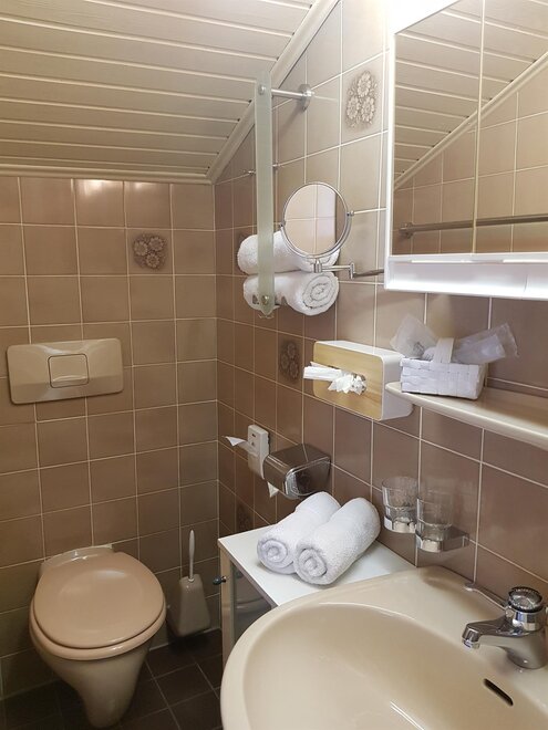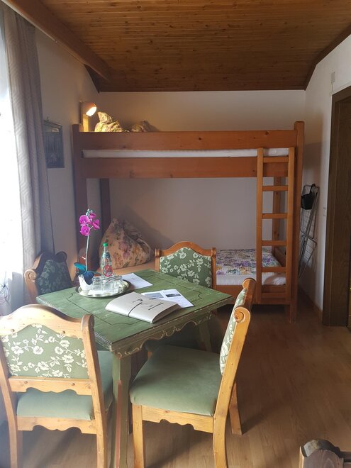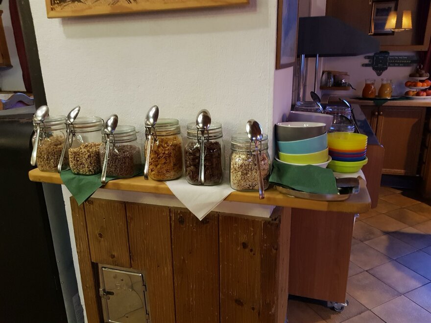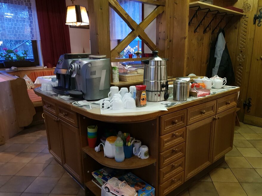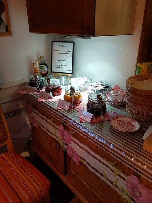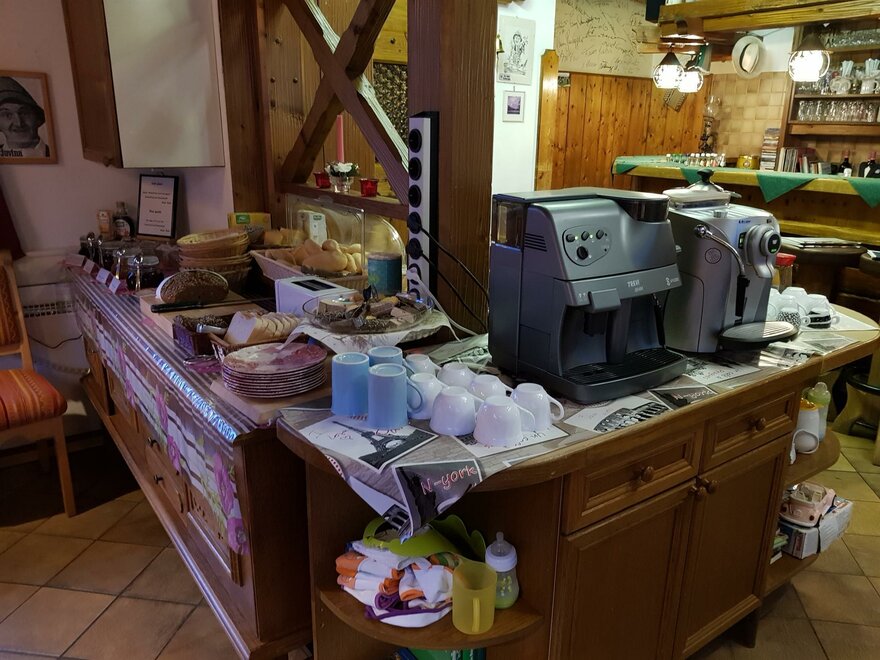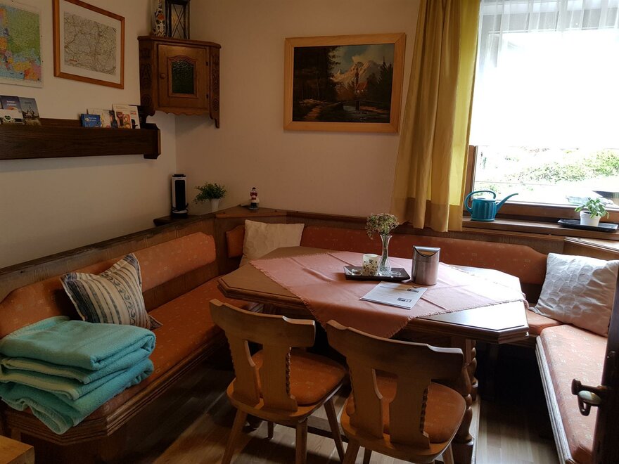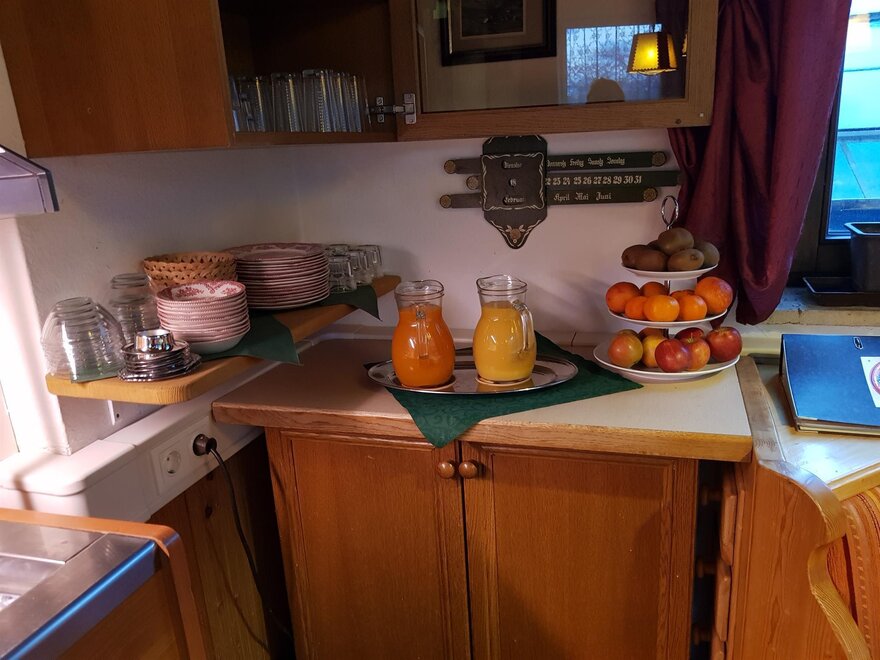 The rooms at the Hiasl Stub'n are furnished with Alpine-style wooden furniture and are equipped with underfloor heating, a seating area, a flat-screen satellite TV, a shower / WC and a balcony with mountain views. We have a double room, a triple room and a family room with an additional bed for two children. The breakfast buffet is served in the historic Hiasl Stubn, an alpine breakfast room with bar and stove. You can also use this room according to your daily schedule and also dinner there after arrangement.