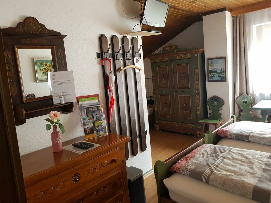 non-smoking room/apt., safe, pets permitted on request, bedding, TV, bed linen available, feather beds, closet, WiFi, maximum no. of pets: 1, balcony furniture, central heating, Größe m²: 18, rustic furniture, hairdryer, use of washmachine, balcony, satellite TV, balcony (in some rooms)
