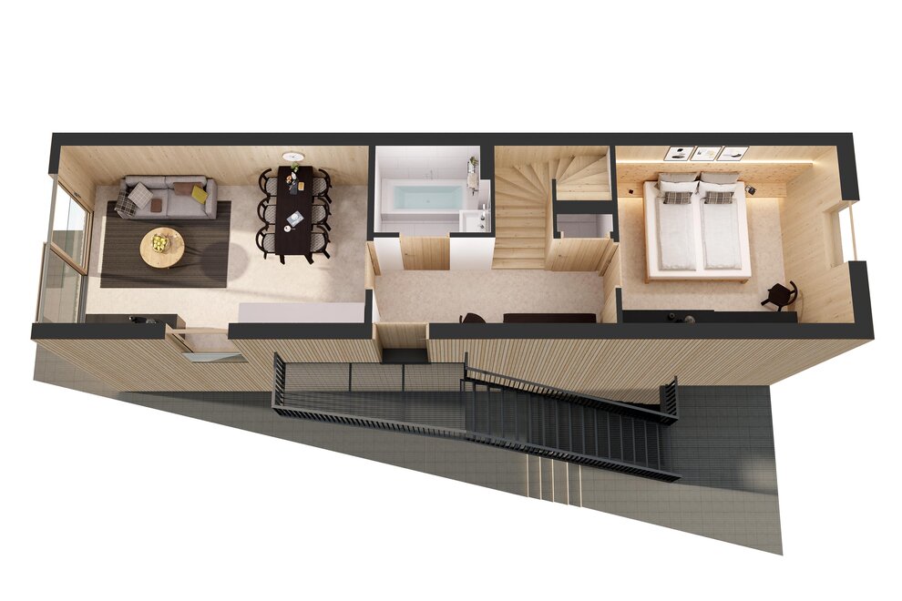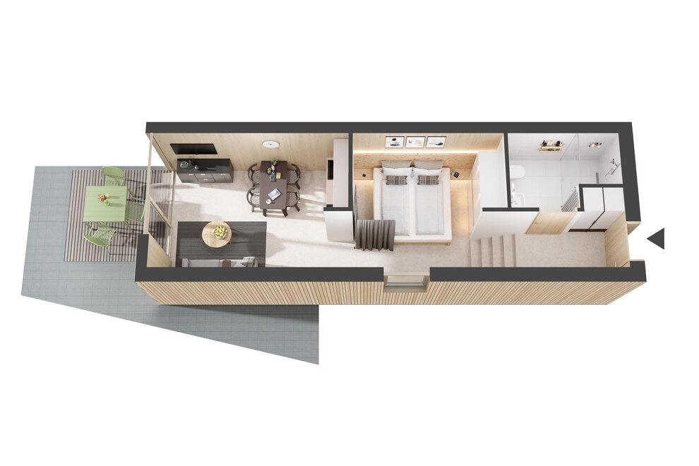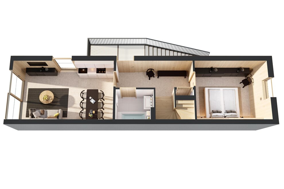 Size 36 m² Occupancy 1 - 4 adults , 0 - 3 children Rooms 2 Bedrooms 1 Room details