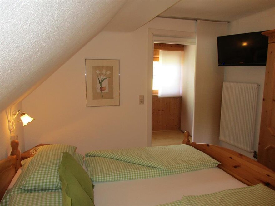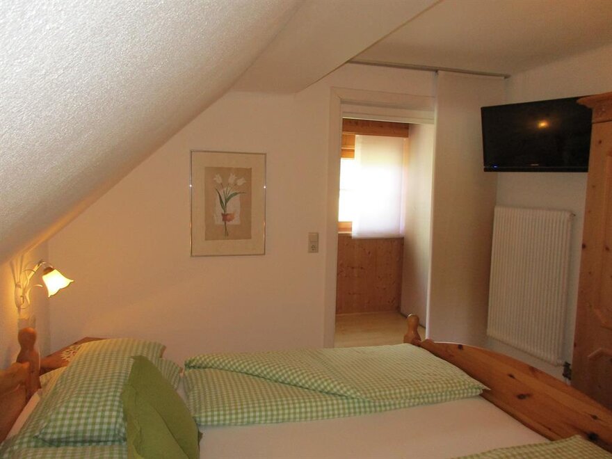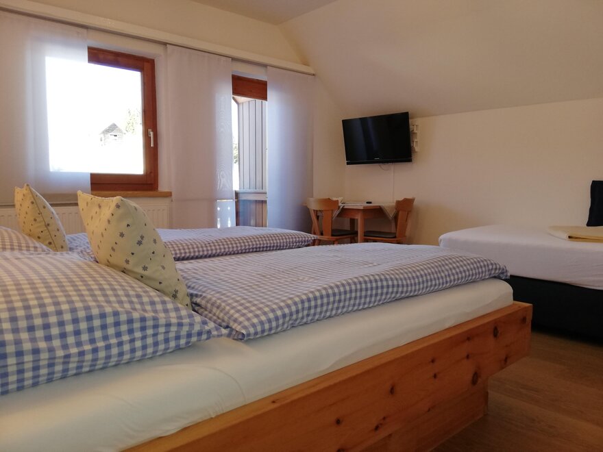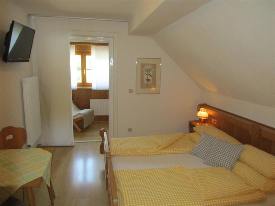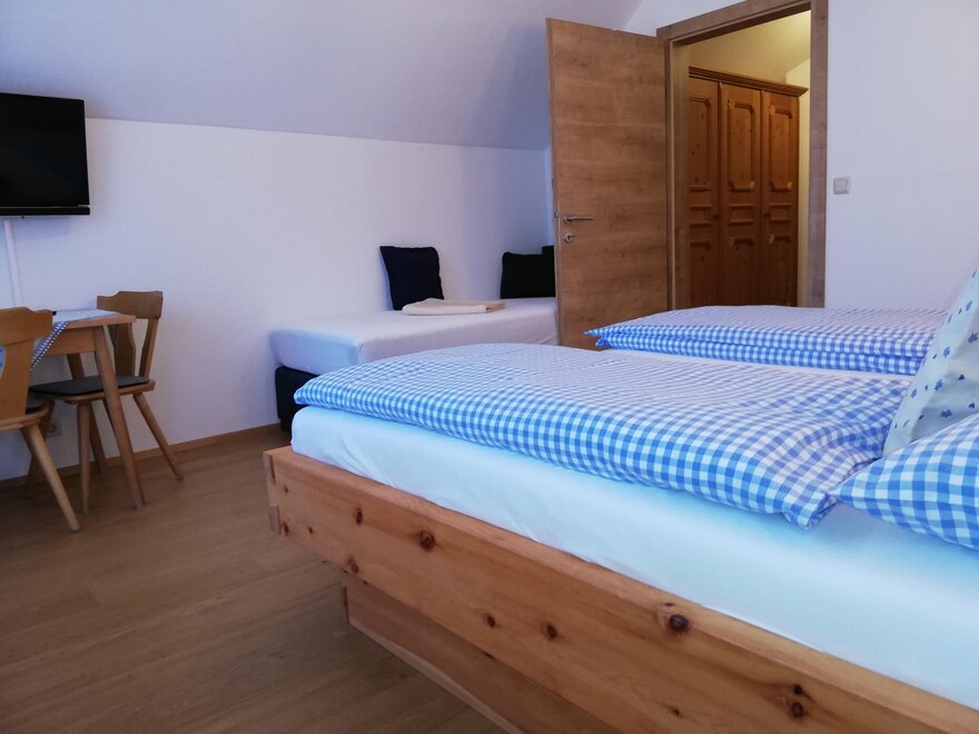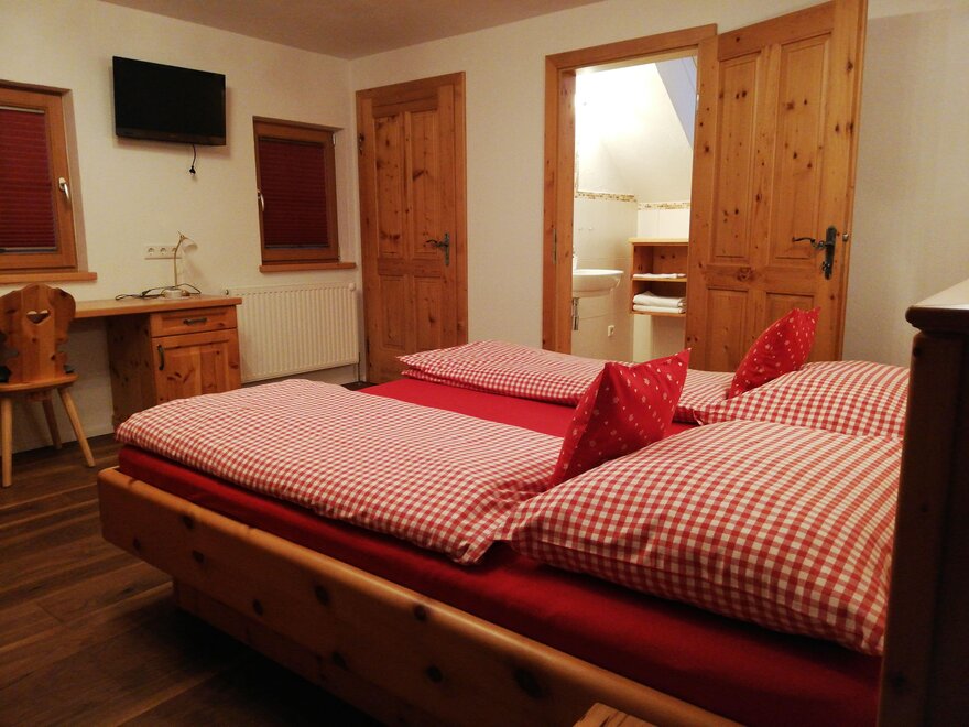 Double or triple room. Lovingly furnished with solid wood furniture. Shower, toilet and Sat / TV. Free Wi-Fi is available.