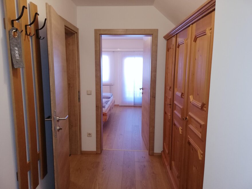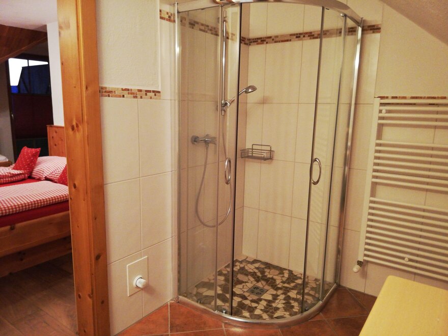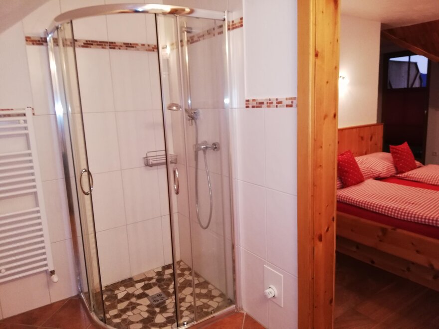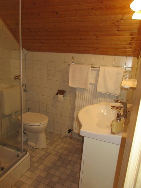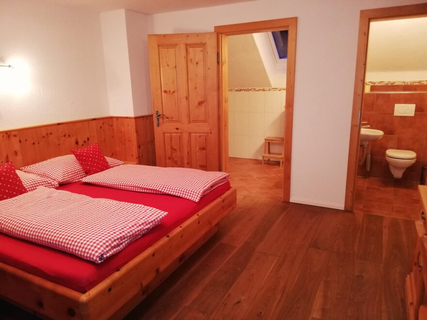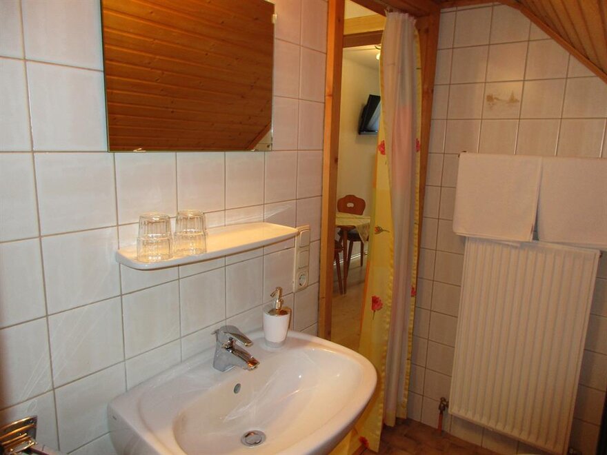 Double or triple room. Lovingly furnished with solid wood furniture. Shower, toilet and Sat / TV. Free Wi-Fi is available.