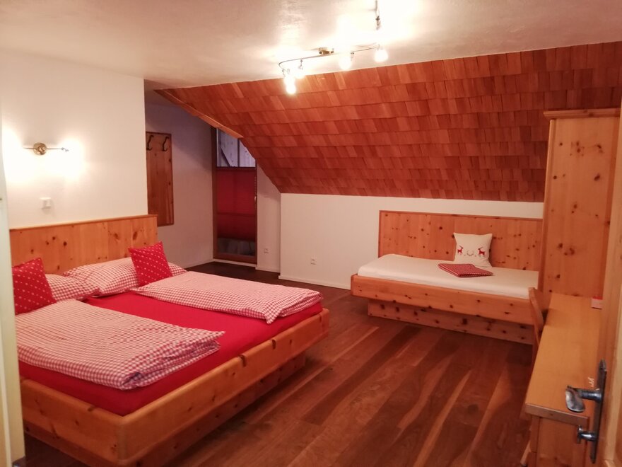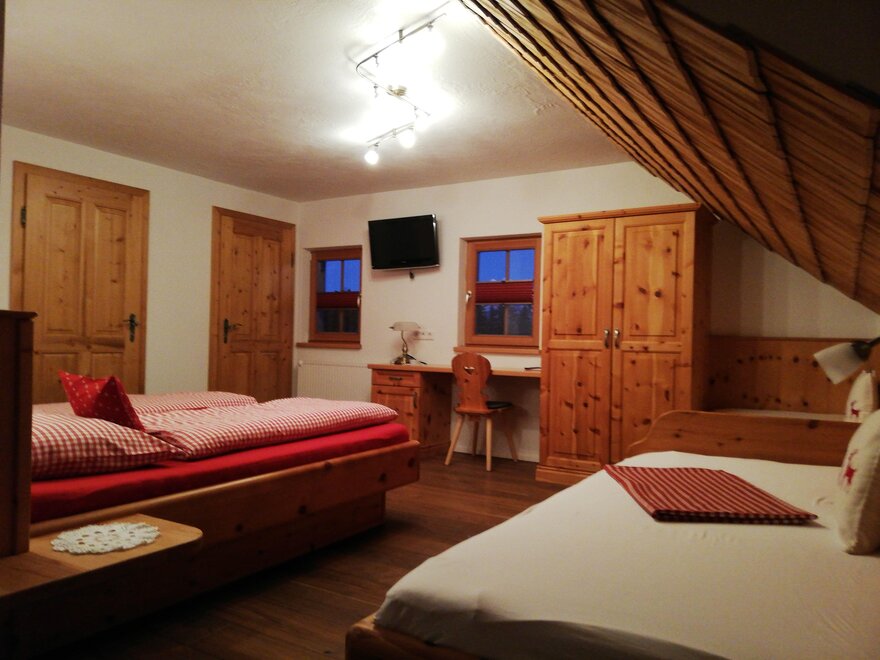 Twin or triple. Lovingly decorated with Zirbenmöbel, bathroom and toilet and Sat / TV. Free Wi-Fi is available.