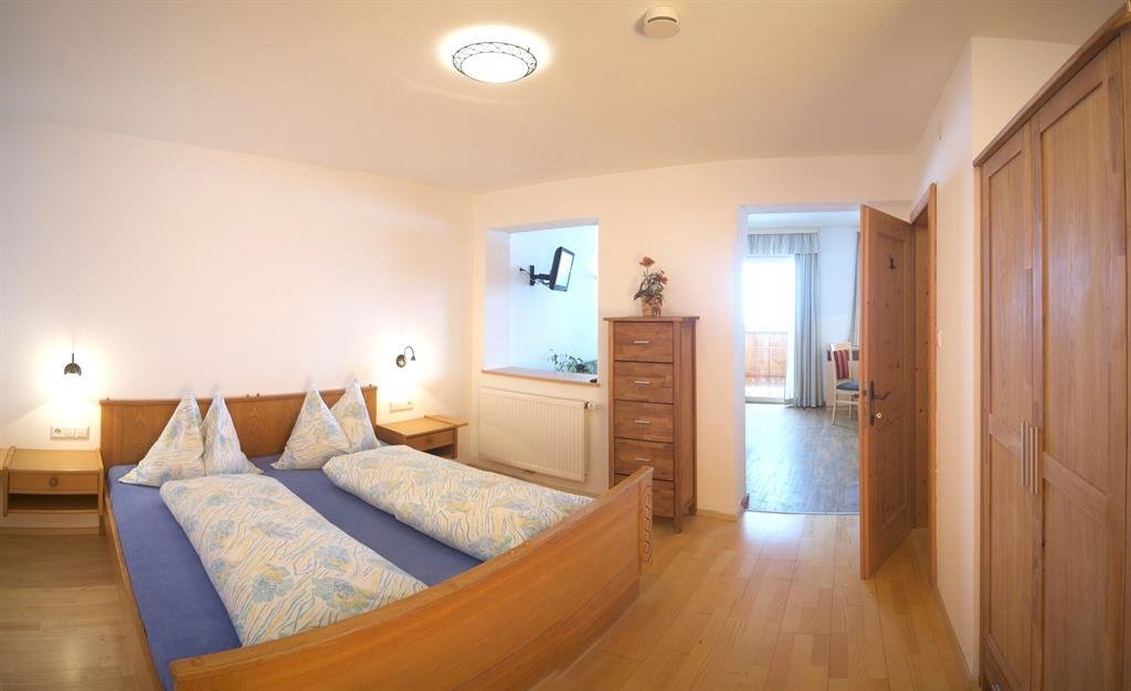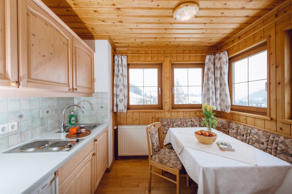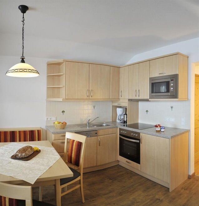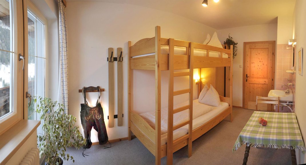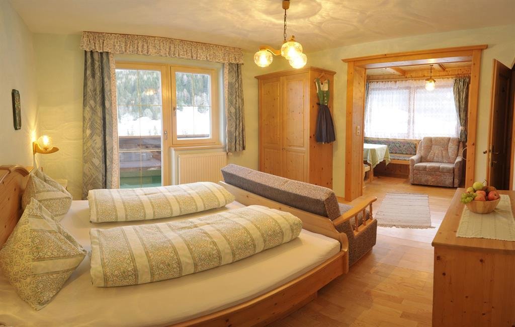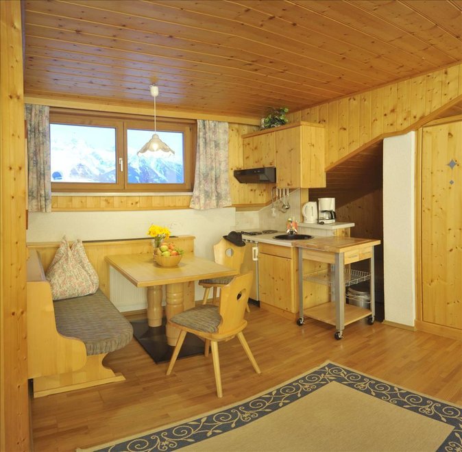 The App. Guschn is equipped with a kitchen with sitting corner, a bathroom and 4 beds. If required we can combine the room with a second bedroom for 2 people.