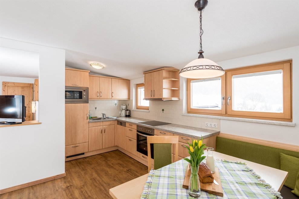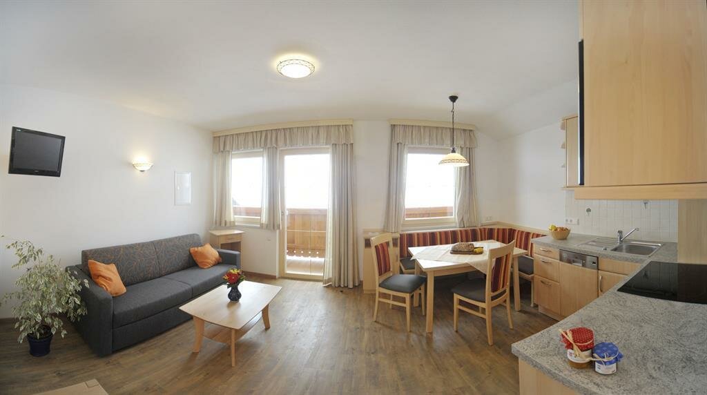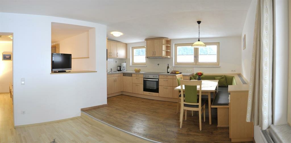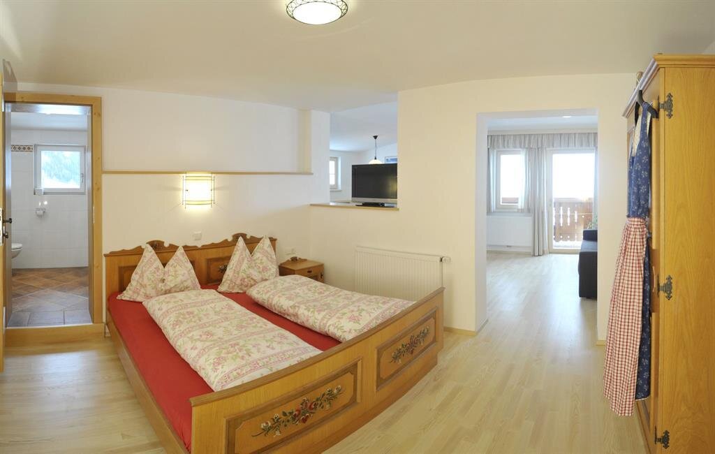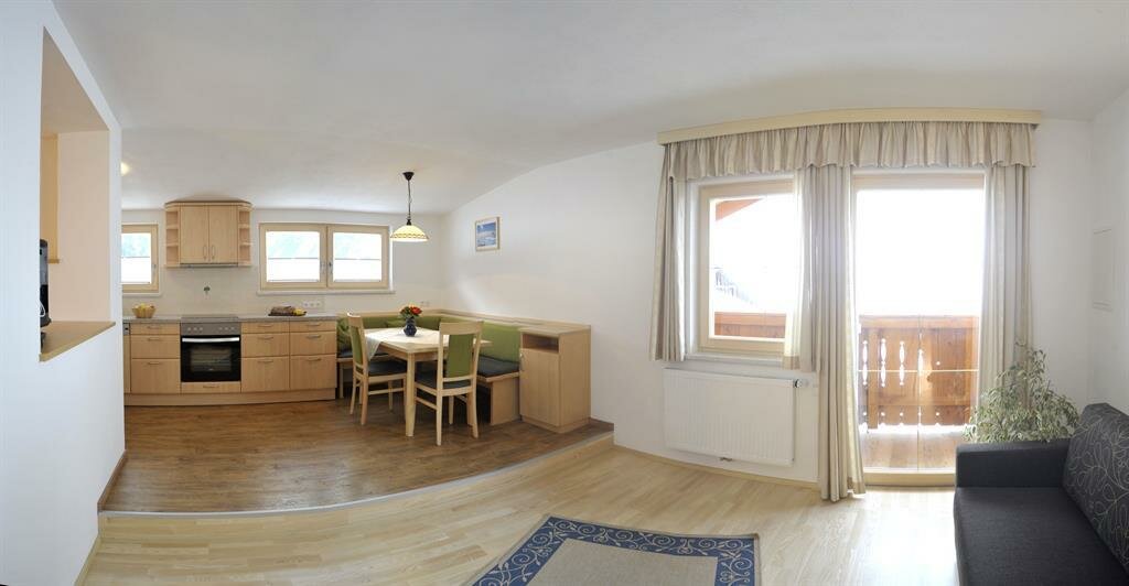 The App. Guschn is equipped with a kitchen with sitting corner, a bathroom and 4 beds. If required we can combine the room with a second bedroom for 2 people.