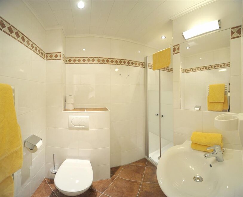 Apartment Guschn (30m2) It consists of one big bed and livingroom. Up to 5 people can stay in this room. Moreover you can connect the apartment with a second bedroom on demand. The kitchen has a fridge, an electric cooker, a coffee machine and a kettle. Cutlery, dishes, pots for cooking, towels and bed linen are supplied. The apartment has a bathroom with shower and a toilet.
